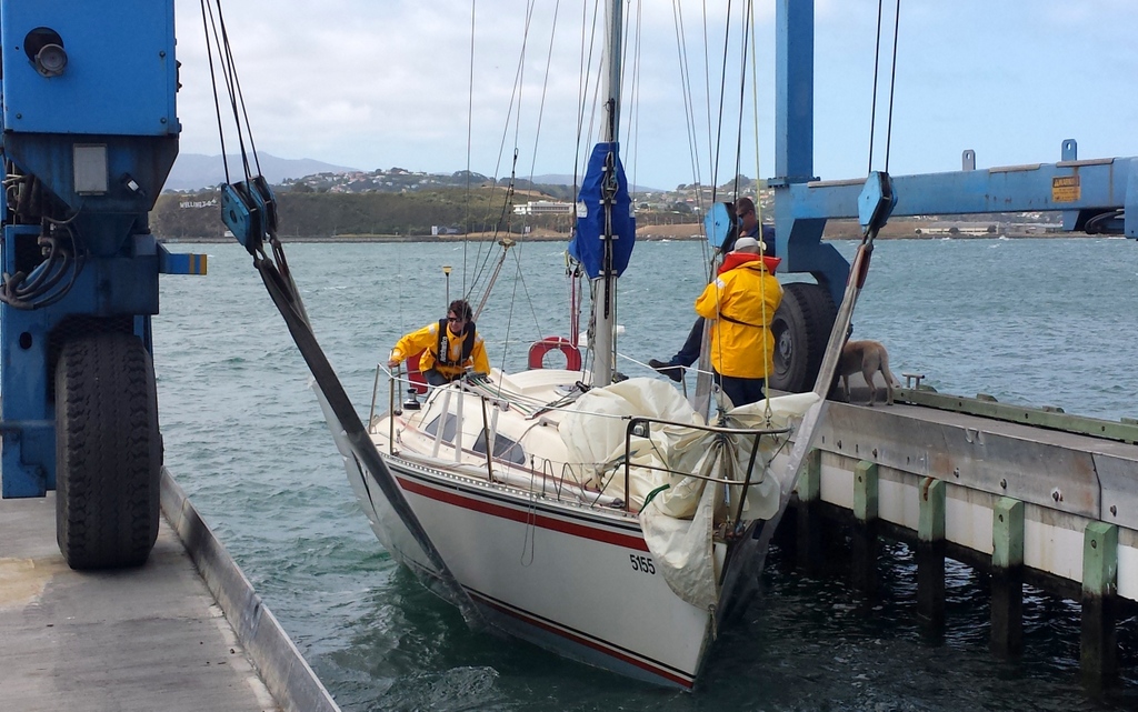 No problems navigating out of Chaffers marina or onto the lift at Evans Bay in spite of the winds.