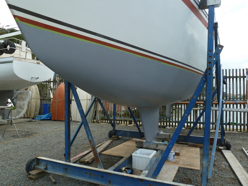 The lead keel was coming apart but we fouand that under the paint water had got in and the lead had an coat of resin on it and that it was coming off.
