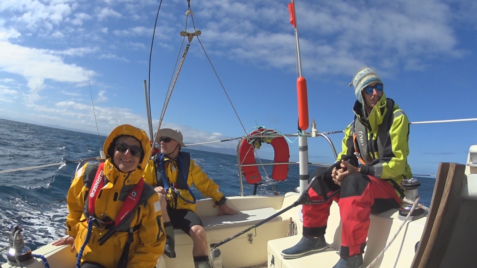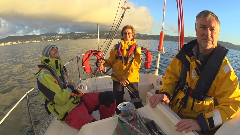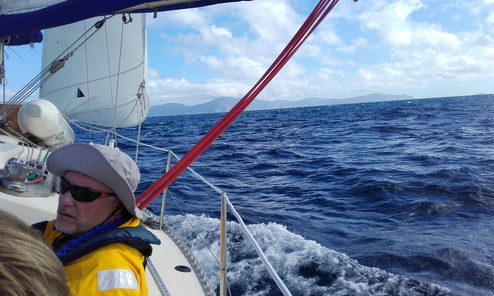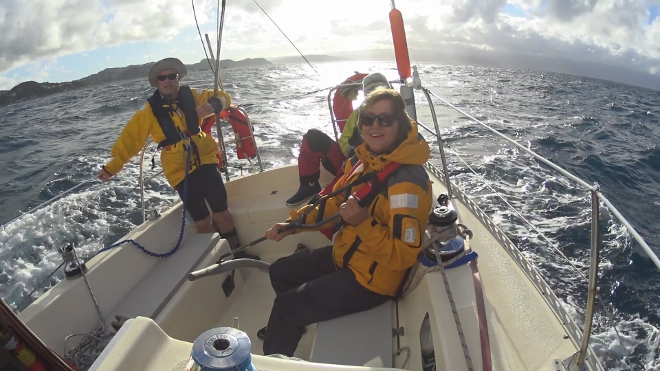 A nice southerly breeze developed as we passed Lyall Bay and we sailed with the # 3 Jib and one reef in the mainsail.