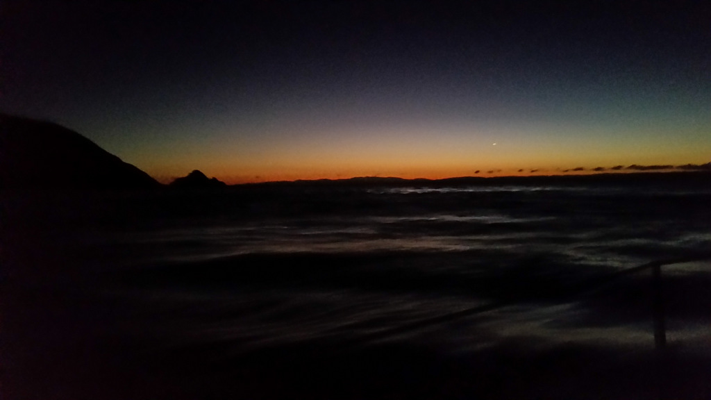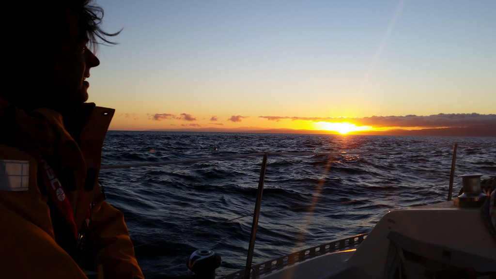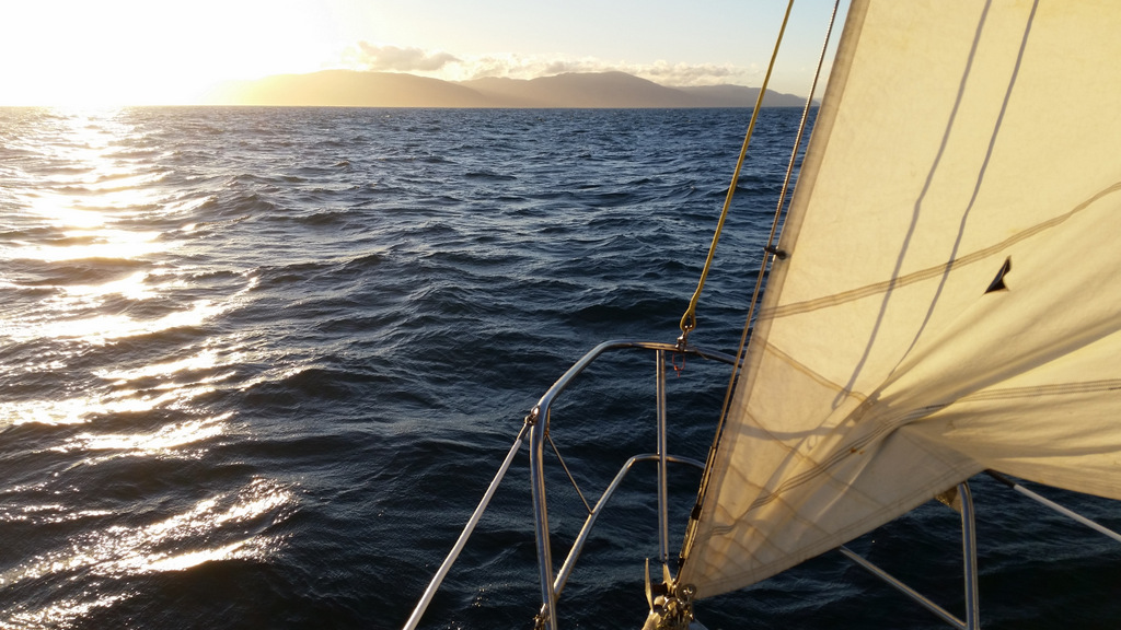 Once we cleared Tory Channel Entrance at 0600 the wind picked up and we set the No. 3 Jib with 1 reef in the Mainsail and enjoyed hot porridge and views of the beautiful sunrise as we sailed out to open sea.