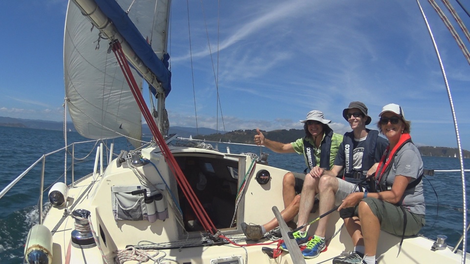 The easy southerlies were ideal for a short sail to try out downwind techniques for the first time. Jason, who is on Graciela’s Cruising Crew course, joined us and proved to be a valuable asset to the team. We left Chaffers at 1430 hrs and rigged the No.2 Headsail and full main.