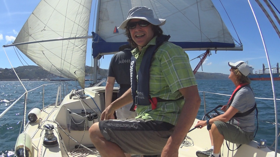 All went perfectly except for a slight error when Geoff inadvertently released the gybe preventer (mistaking it for a jib sheet – not thinking!) and we went into an unexpected gybe. Lesson learned: use a different coloured rope for the gybe preventer to the job sheets.