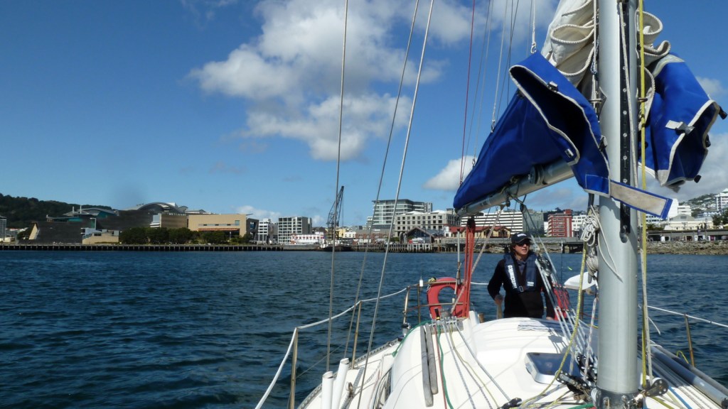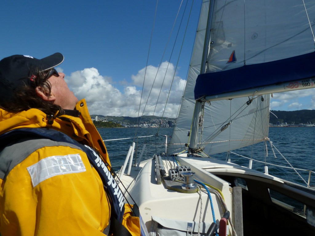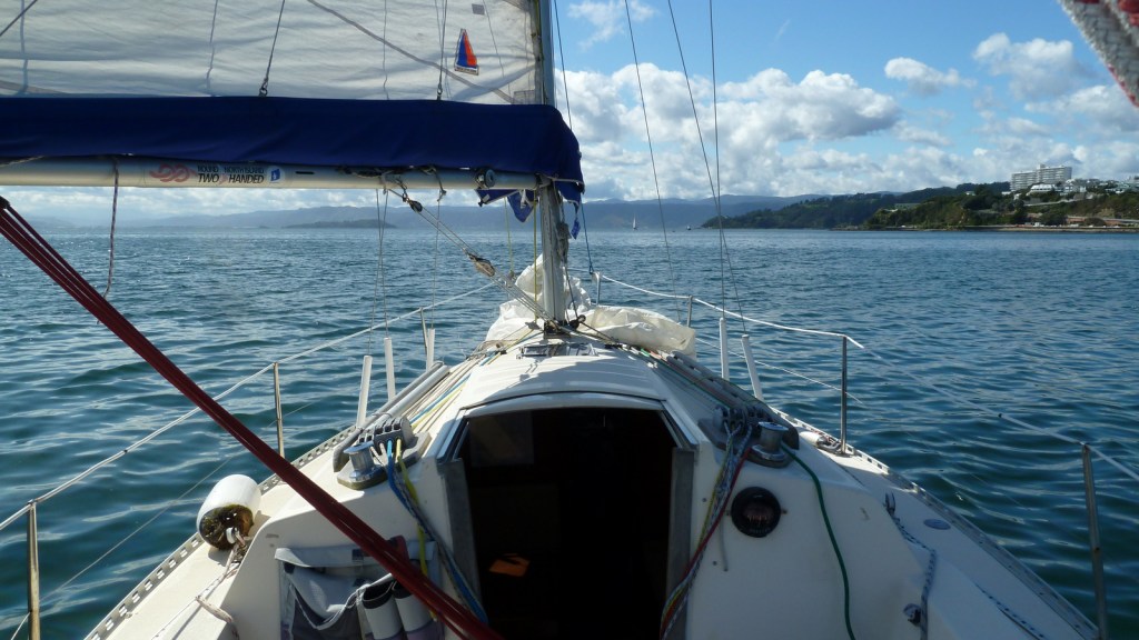 After sailing with mainsail realised southerly wind was going to be a bit strong so pulled down the No. 1 and hoisted the No 3 jib and sailed perfectly across Evans Bay and past Point Halswell before turning back. Got up to 6.3 knots speed over ground (SOG) on the way back as measured with Sail Droid.
