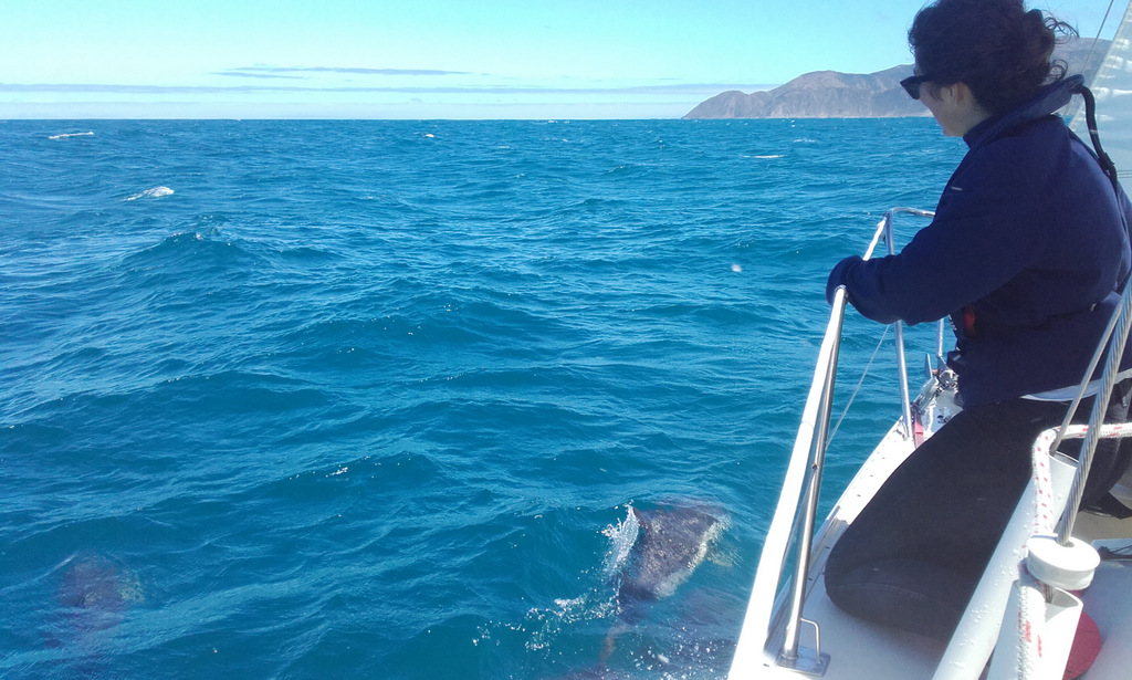 We were joined by a large pod of dolphins as we neared Island Bay. Very exciting!