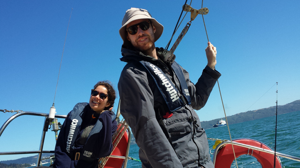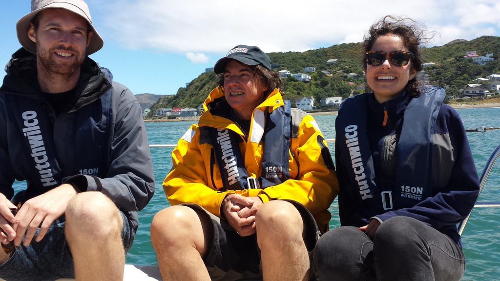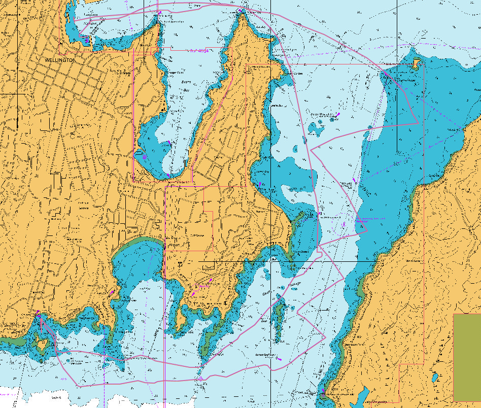 Set off from Chaffers at 1023 hrs and tacked our way out to Cook Strait with Mainsail and No. 2 Genoa. . The southerly was stronger than predicted so we changed the No.2 for the smaller No. 3. Took the long way round Barrett Reef Buoy arriving at Island Bay at 1310 hrs.