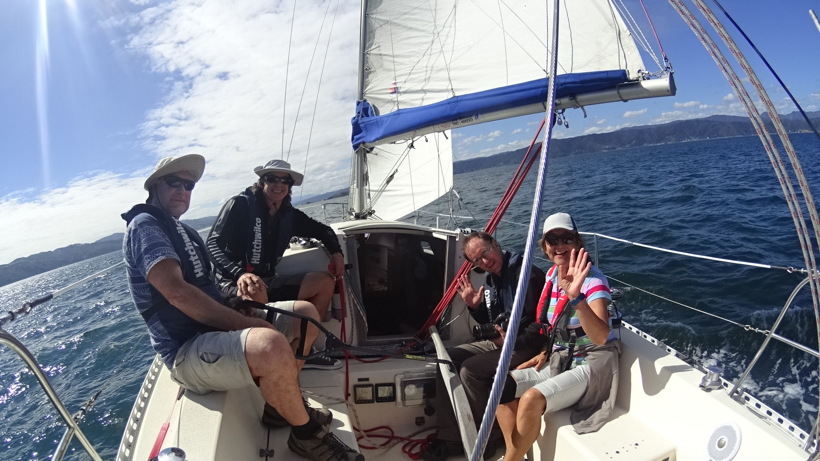 Dropped the anchor at 1406 hrs on the lee side of Somes Island in about 18 M depth. After lunch we returned in a single tack on a beam reach (90-100 degrees) at a good speed of up to 6.6 kts. Graciela spotted dolphins swimming under the boat! About 4 or them but no time to get a photo. We arrived back in the marina berth at 1612 hrs in time for a cool beer!