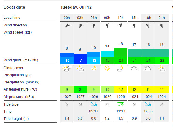 Marine Forecast: Northerly 17 knots gusting 20. Sea moderate. Cloudy periods