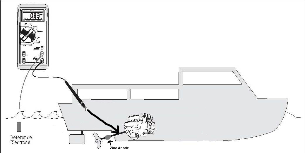 The same test from the Engine Block gave reading of -340 mV. According to Bob Olsen of Boatzincs.com: