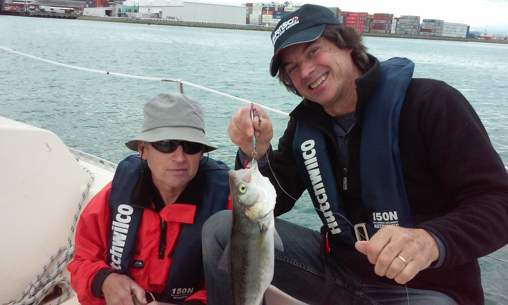 We had the fishing rod trailing the boat with a spinner and suddenly Brent noticed we had caught something. I had finger problems with the new fishing rod and got the line all twisted and couldn’t wind in the fish. We didn’t want to stop and lose the nice wind so kept the fish trailing behind us until we stopped back at Wellington to discover a nice big kahawai on the hook. My first catch on Halo!