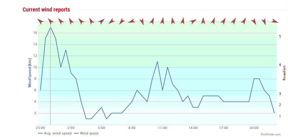 Marine Forecast: Southerly 10 knots, rising to 15 knots early evening and to 20 knots late evening. Sea becoming moderate. Fine apart from evening cloud.