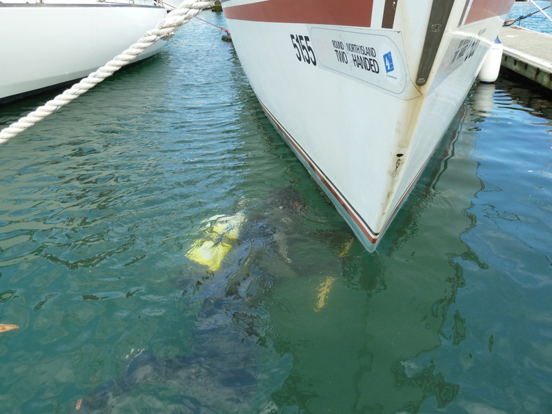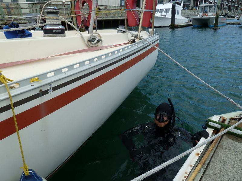 On the recommendation of Louis (neighbour at Chaffers) I contacted Dean Fraser (021-437 732) to do an underwater clean and check of the hull rather than hauling the boat out of the water. The diver, Murray, spent almost an hour in the water and completed: