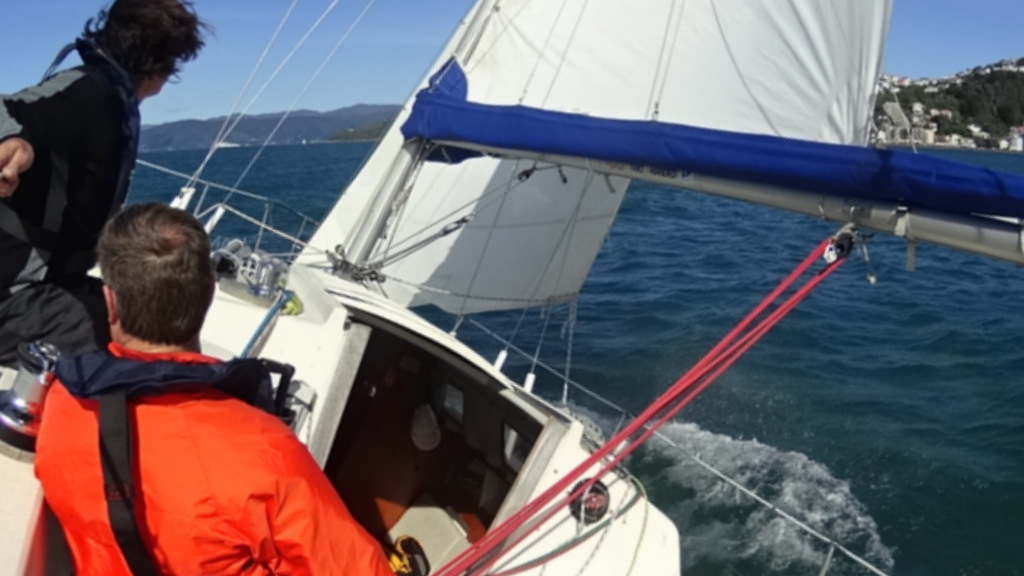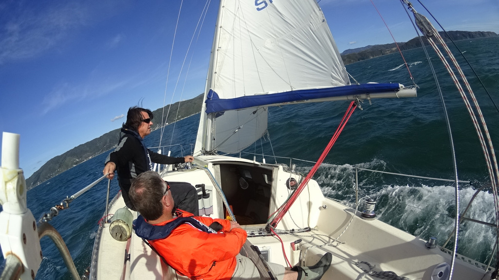 After work sail with a gusty northerly round Ward Island and back. Used the No. 3 Headsail. and No. 2 reef in the Mainsail. Wind was averaging 10-18 kts with gusts recorded up to 25 kts on the anemometer. Boat performed very well in choppy seas and speed was recorded averaging 6.5 kts SOG on the plotter as we passed Point Halswell towards Ward Is. An exhilarating and fun sail.
