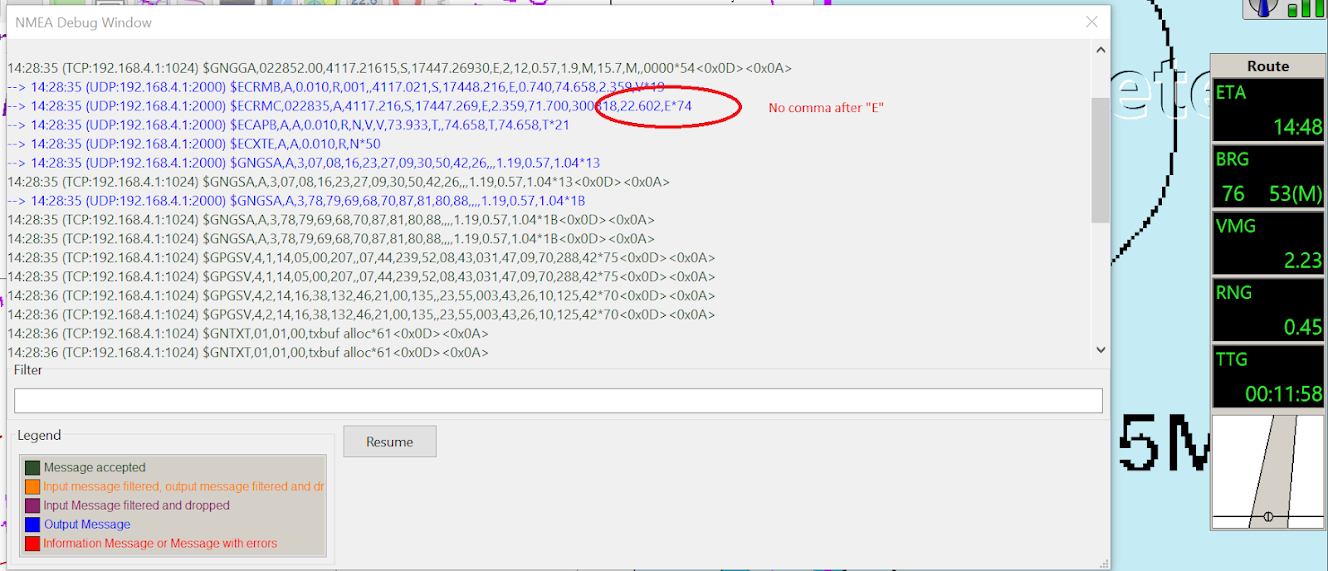 - NMEA version 2 and onwards states that the RMC sentence must include an extra field Nbr 12 “FAA mode indicator” however the ECRMC sentence generated by OpenCPN when navigating to a waypoint does NOT include this field.