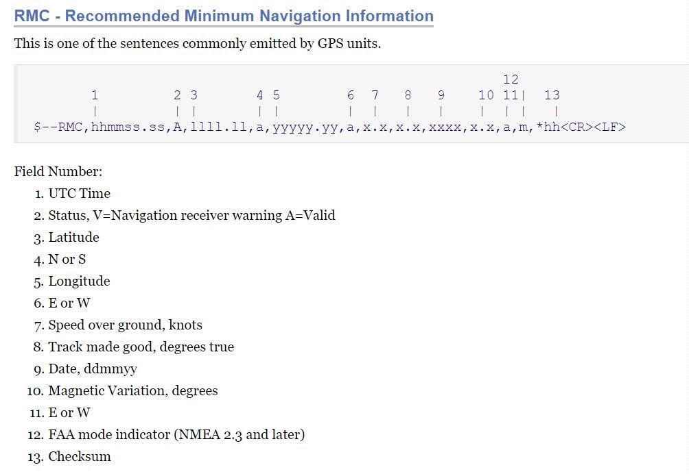 After more head scratching and reading about NMEA sentence structures, I learned: