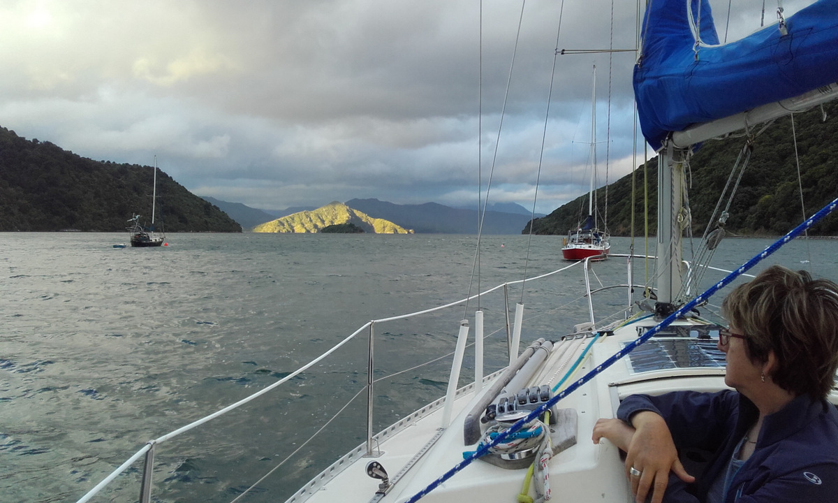 Left Kaipakirkiri Bay at 1030 hrs heading back to Picton. Arrived at Picton at 1120 hrs to find another boat was tied up on our mooring! We came alongside and I boarded the boat to find a guy sleeping in the cabin. He offered a number of weak excuses for his presence and we eventually got rid of him. We rowed the dinghy to the visitors berth and went into town for lunch and a look around.
