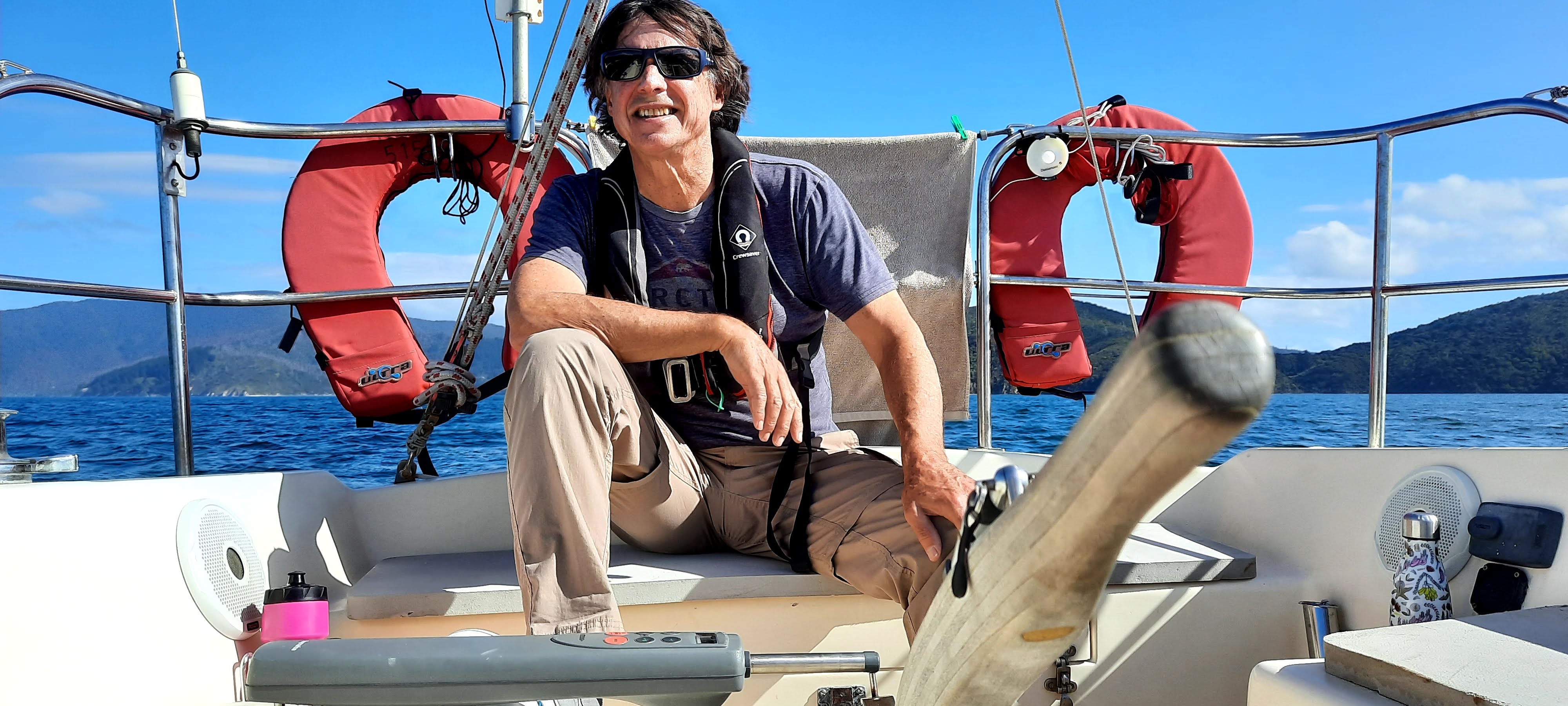 Following our Cook Strait crossing from Wellington with Murray and Phil, Geoff spent a couple of days on Halo in Picton doing a bit of boat cleanup and maintenance before Graciela flew over from Wellington on Sounds Air. We celebrated her arrival on Saturday with a dinner and blues music night at Le Cafe. Great evening hosted by Peter, the owner of Le Cafe. We had a good chat with Peter about our mutual experiences on Quark ships in the Antarctic. He was ‘executive chef’ on the MV Khlebnikov.