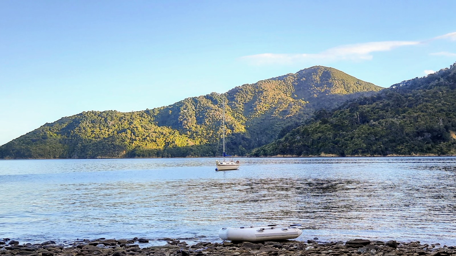We spent another day at Picton before sailing off up Queen Charlotte Sound on Monday. Nineteen miles of beautiful sailing in variable breezes.