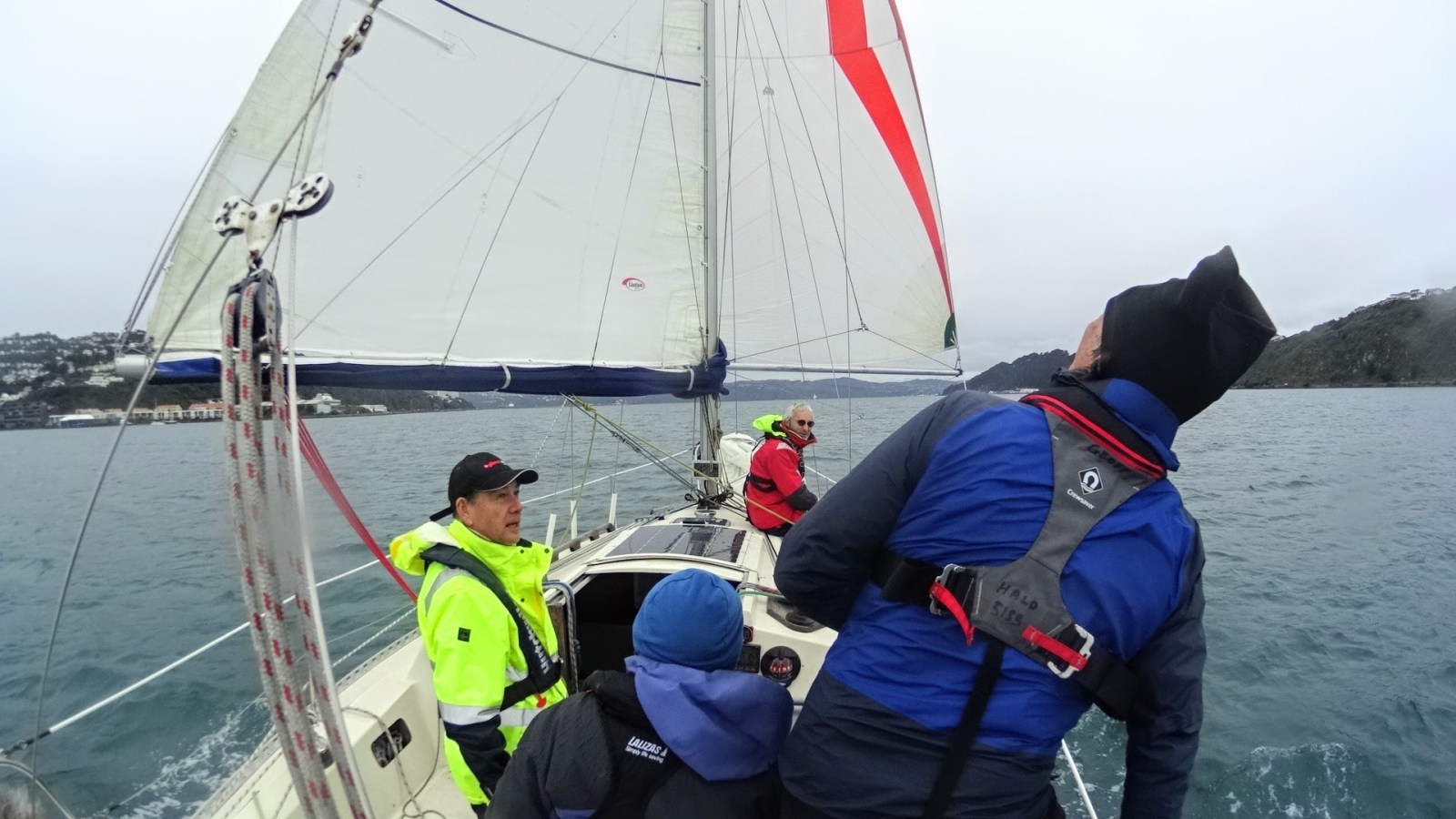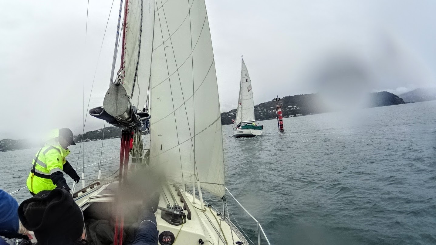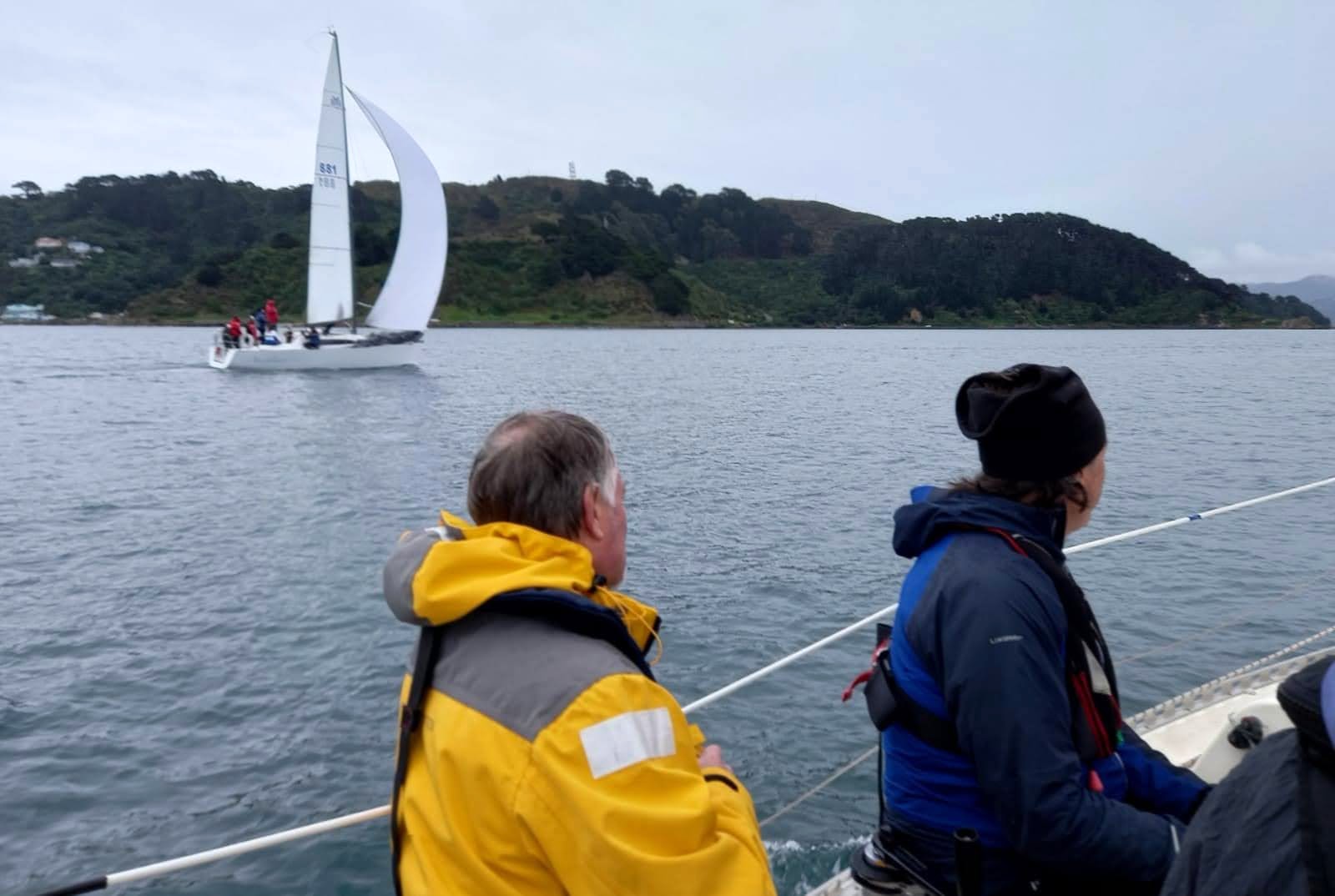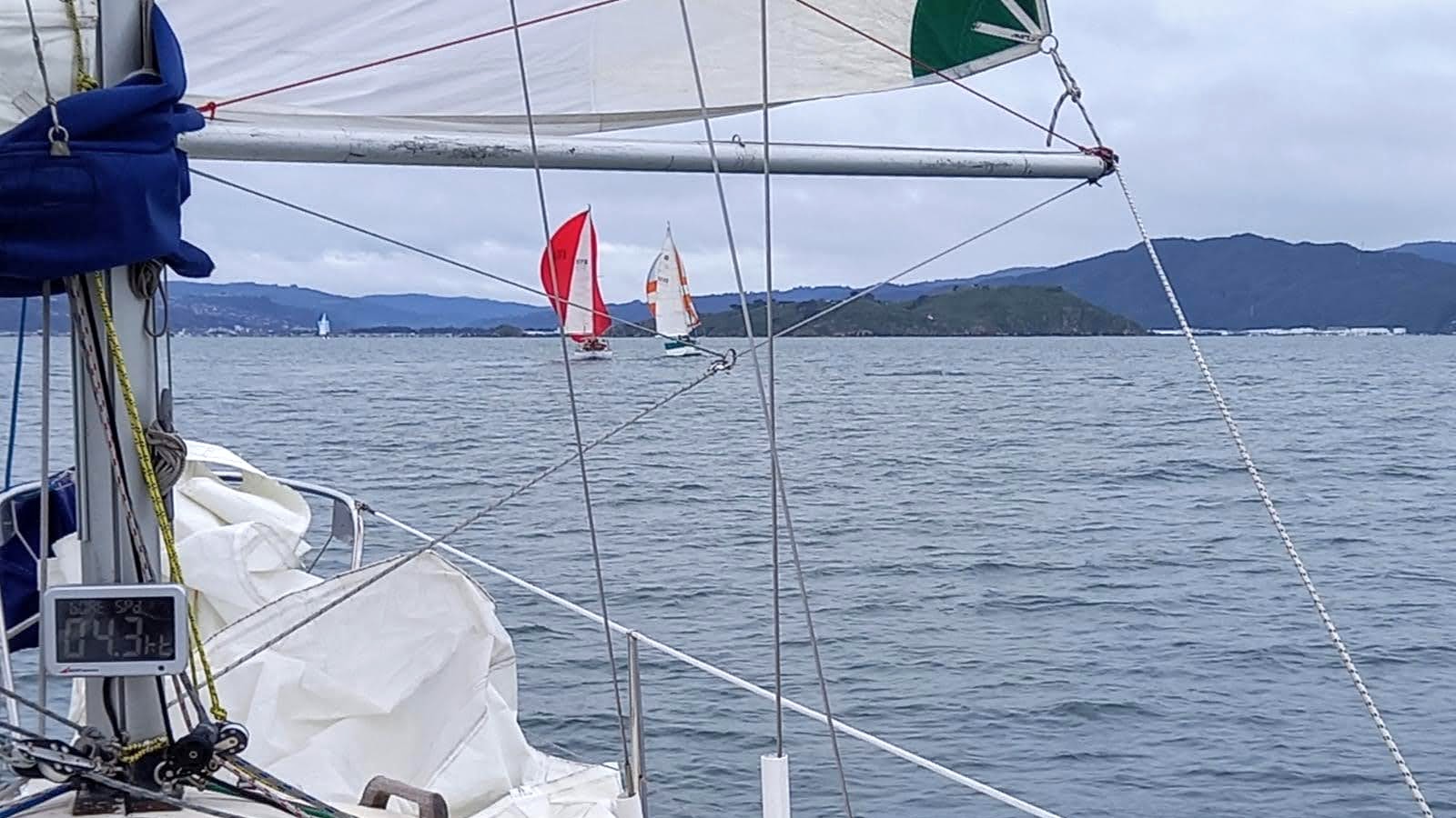 We continued upwind to the Falcon Shoals Mark #10 in just one tack almost passing Grenadier who had to do a couple of tacks. We then hoisted the maxi spinnaker for the run to Pt Halswell but were unable to pass Grenadier who steadily pulled ahead of us and maintained their lead to cross the Evans Bay finish line 90 seconds in front of us. A thoroughly enjoyable duel!