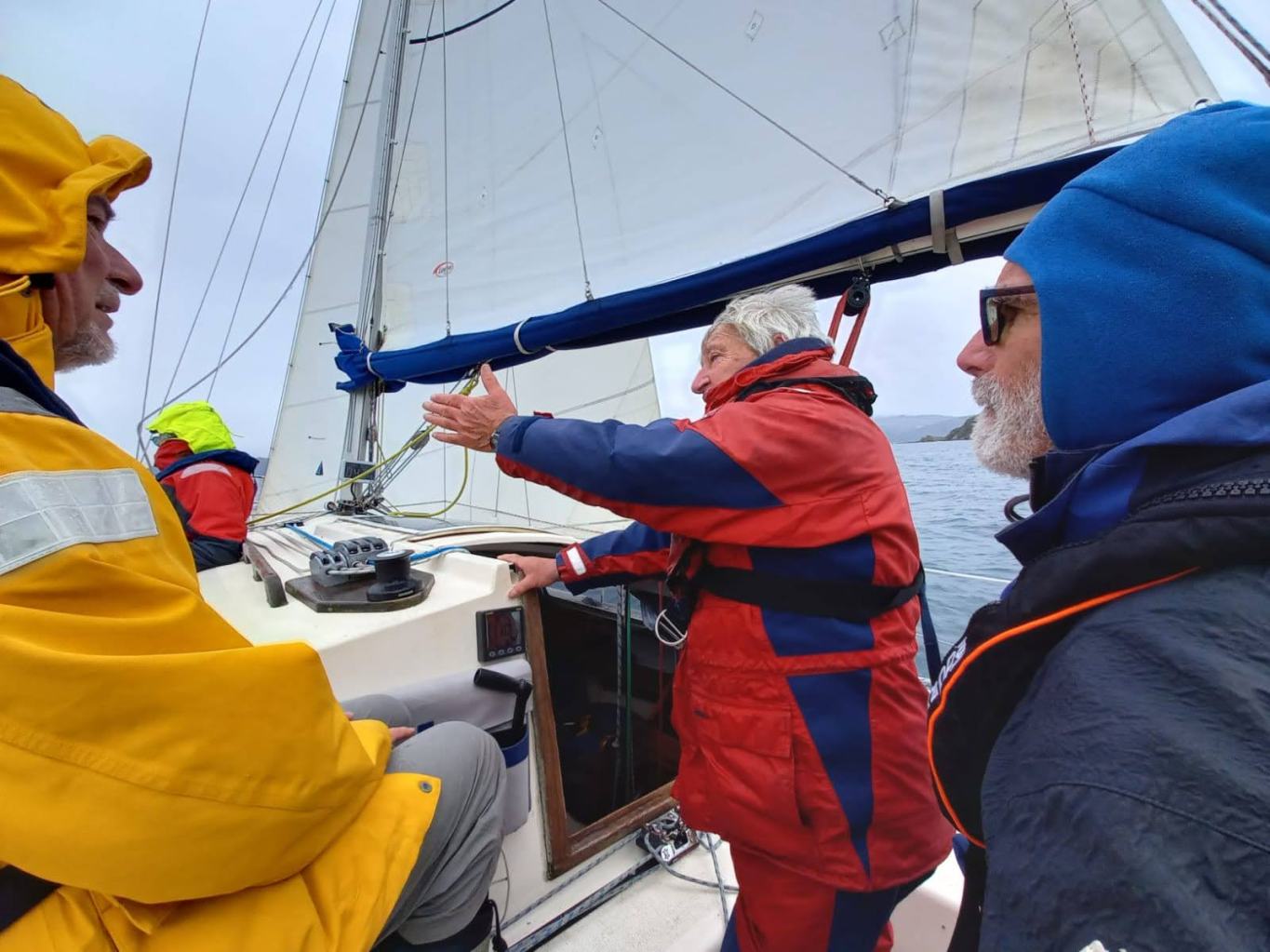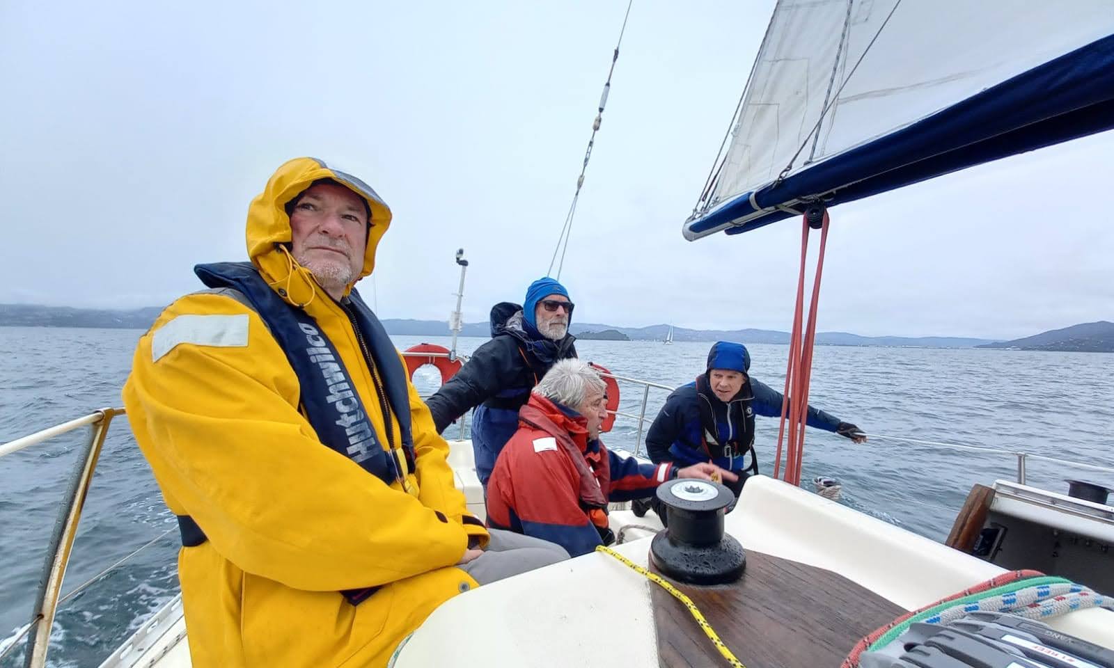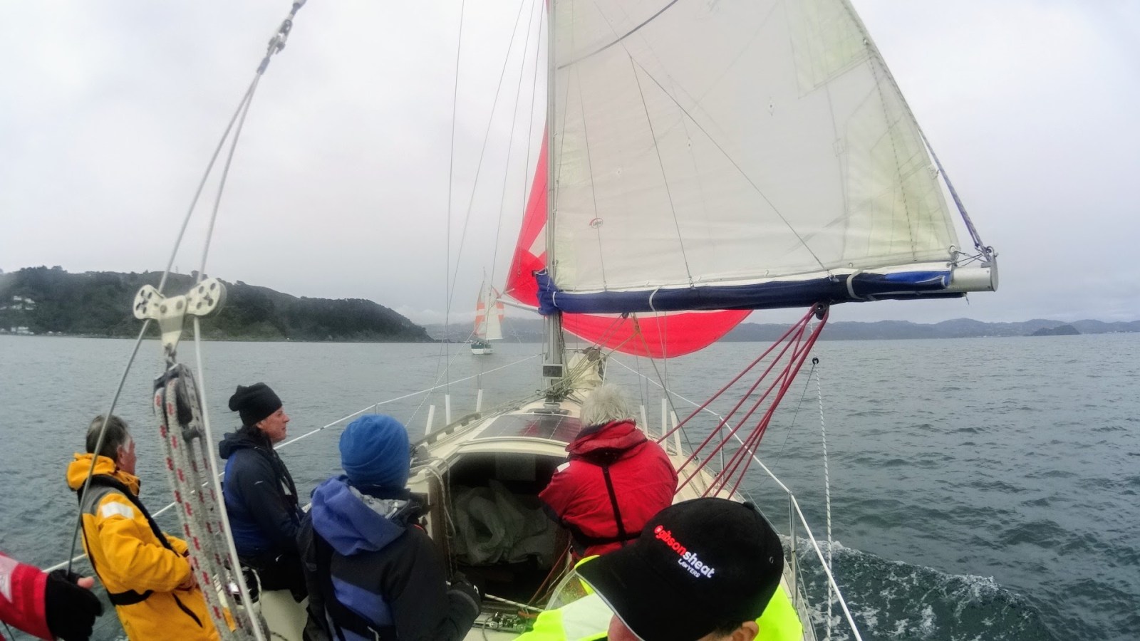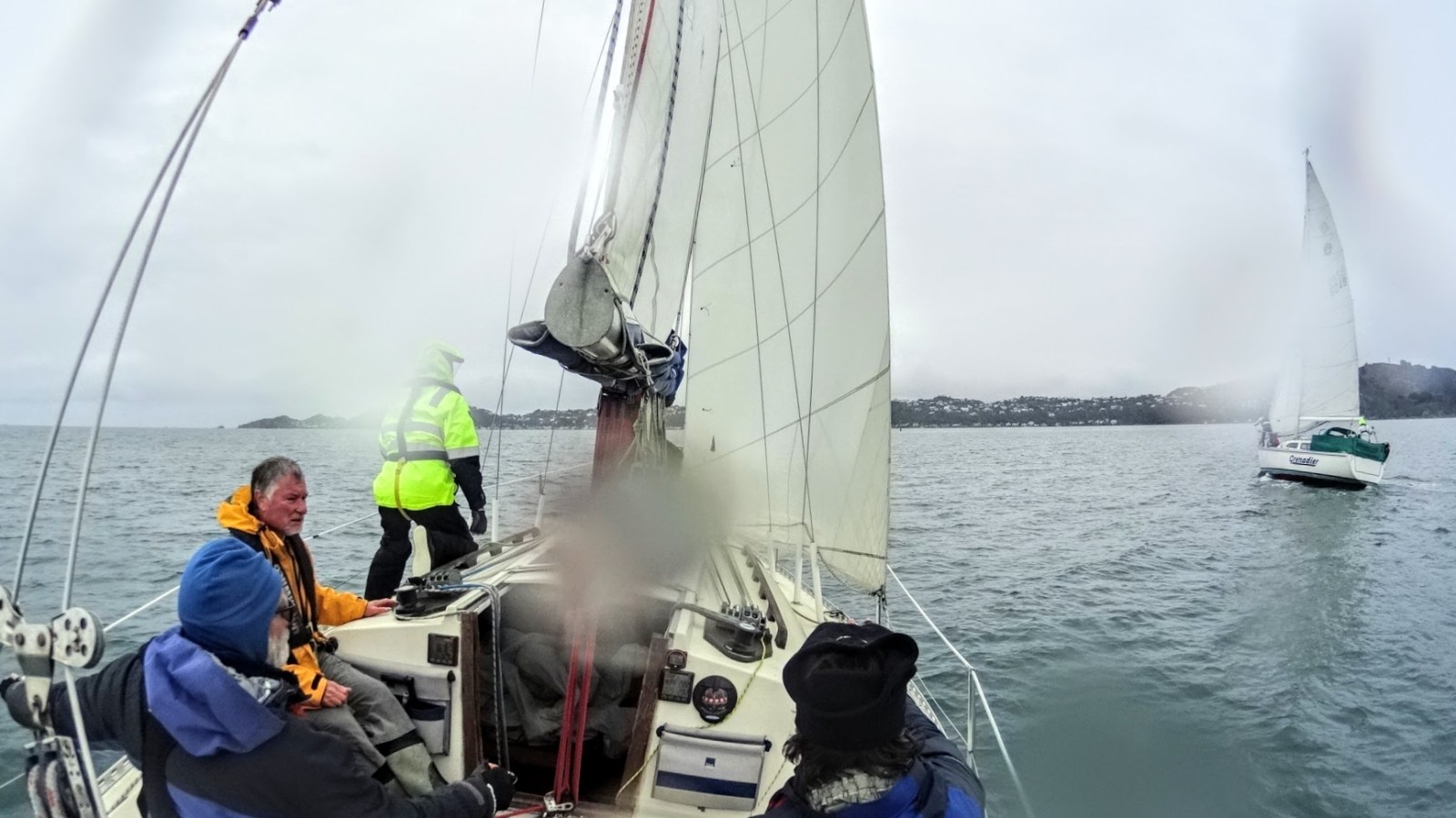 We changed the headsail from the No. 2 to the big No. 1 HW and started the upwind leg to Ward Island. Geoff kept an eye on the chartplotter to calculate the best course while minimising tacks and Grant steered a steady course as we passed Tamerlane and Coriander and got to within five boat lengths of Grenadier as we went round Ward Island.