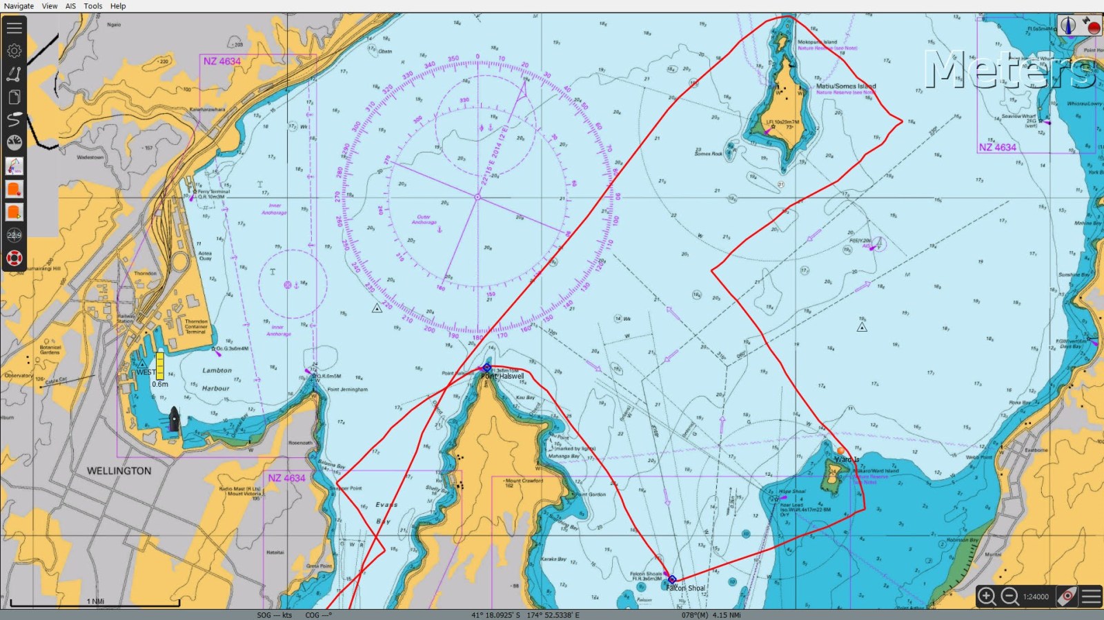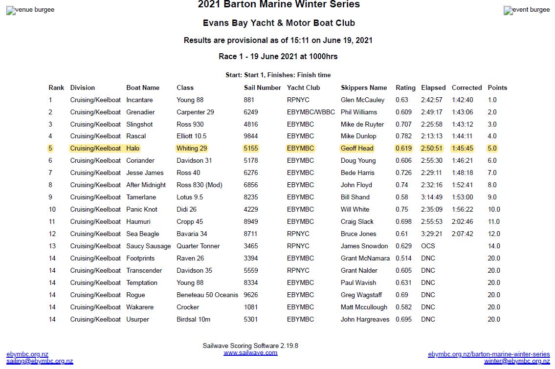The Keelers Division race was to be Pursuit Start with Halo’s start time set at 1025 hrs. We cast off from Chaffers in about 18 kts of southerly and motor sailed round to Evans Bay to collect Murray and Albrecht. The course was set as #1 Special: Start – Somes – Ward – Falcon Shoals – Finish. All marks starboard rounding.