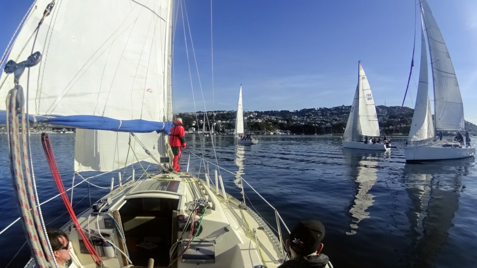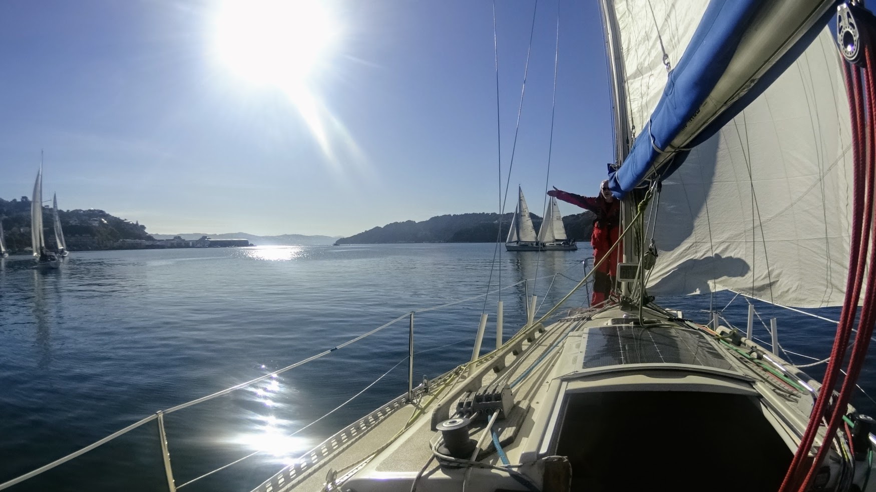 On the downwind run we hoisted the kite and with the breeze down to 2 kts we sailed slowly down the bay to cross the finish line at 1255 hrs with 6 boats behind us and scoring 6th place on handicap out of 15 boats. A beautiful day out on the water!