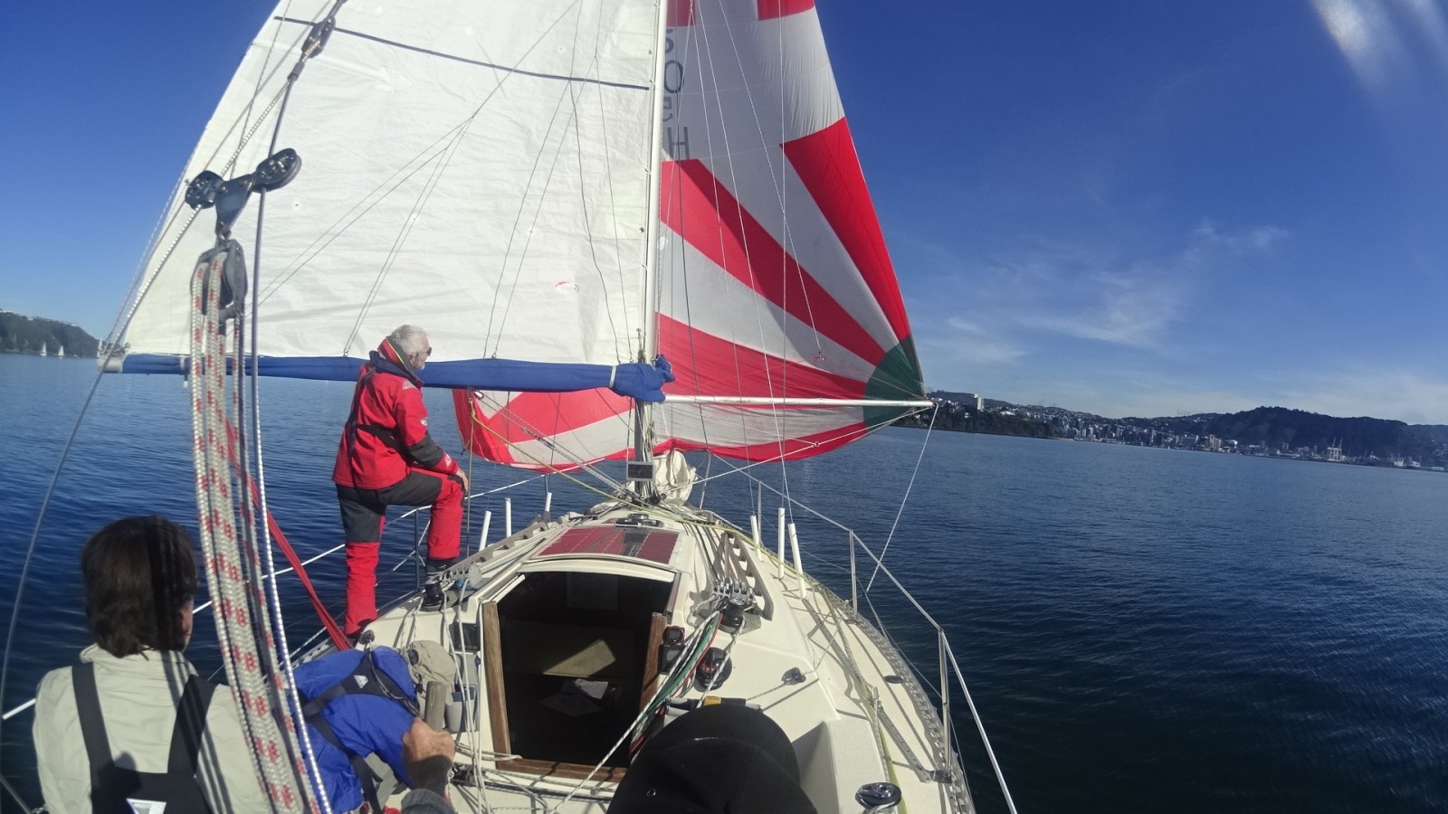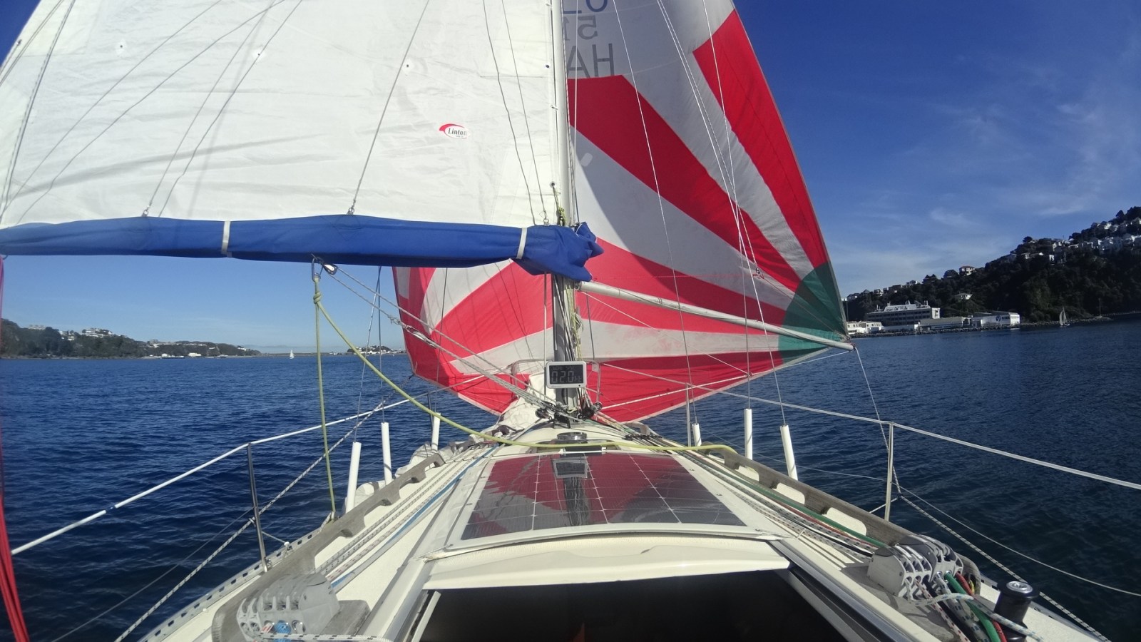 Start time for all boats was 1045 hrs. Start – Mark 15 off Pt Halswell – Mark 8 off Greta Point – Finish. We hoisted our No.1 LT Genoa and rigged up ready to use the Maxi Spinnaker. The wind was very light but all 15 boats in the Cruising Division managed to complete the (shortened) course.