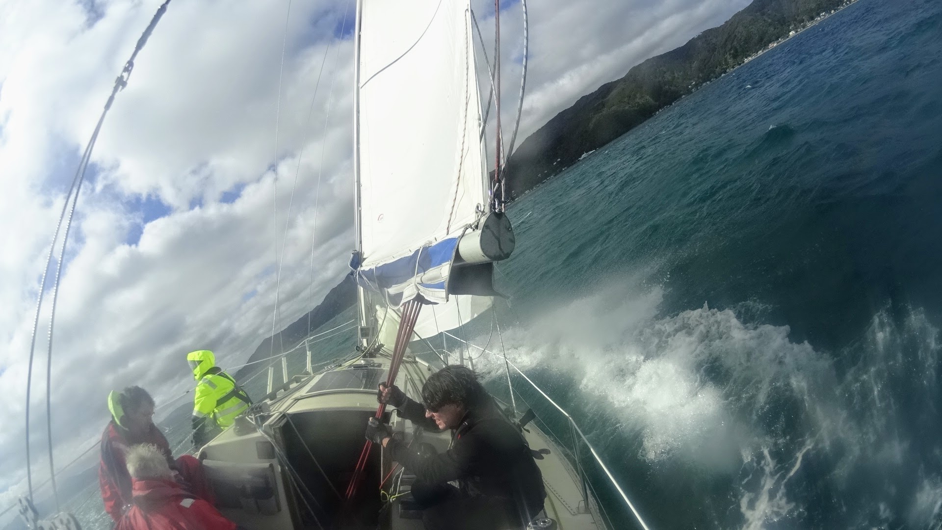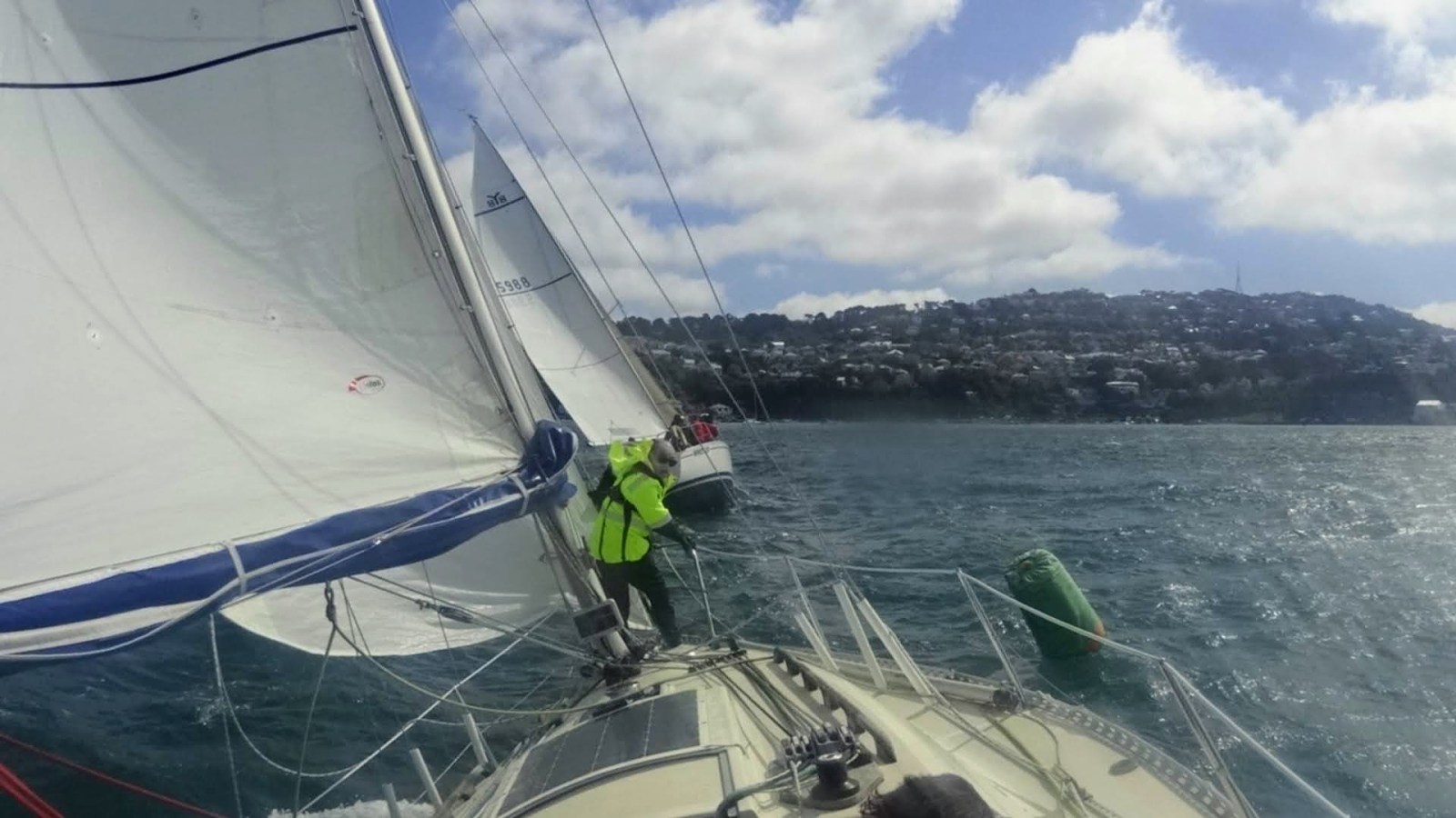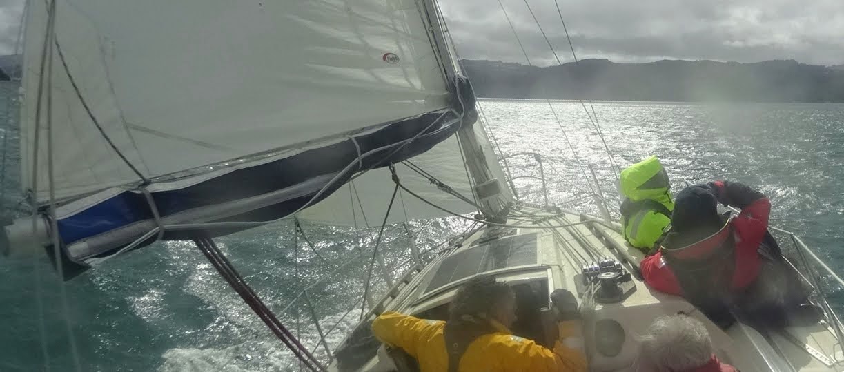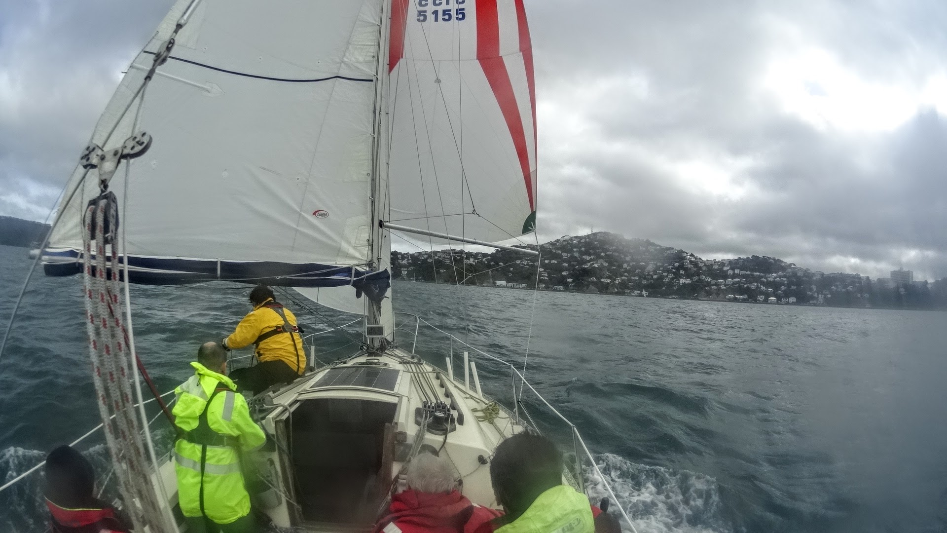 With the spinnaker sheet now restrained by the jury rigged tweaker line the kite was more stable. We hoisted the jib to ease the pressure off the spinnaker and the rest of the run down to Evans Bay to the finish line went without incident. After the race we dropped off Roman at the Evans Bay wharf and motored back home tying up at Chaffers Marina at 1700 hrs.