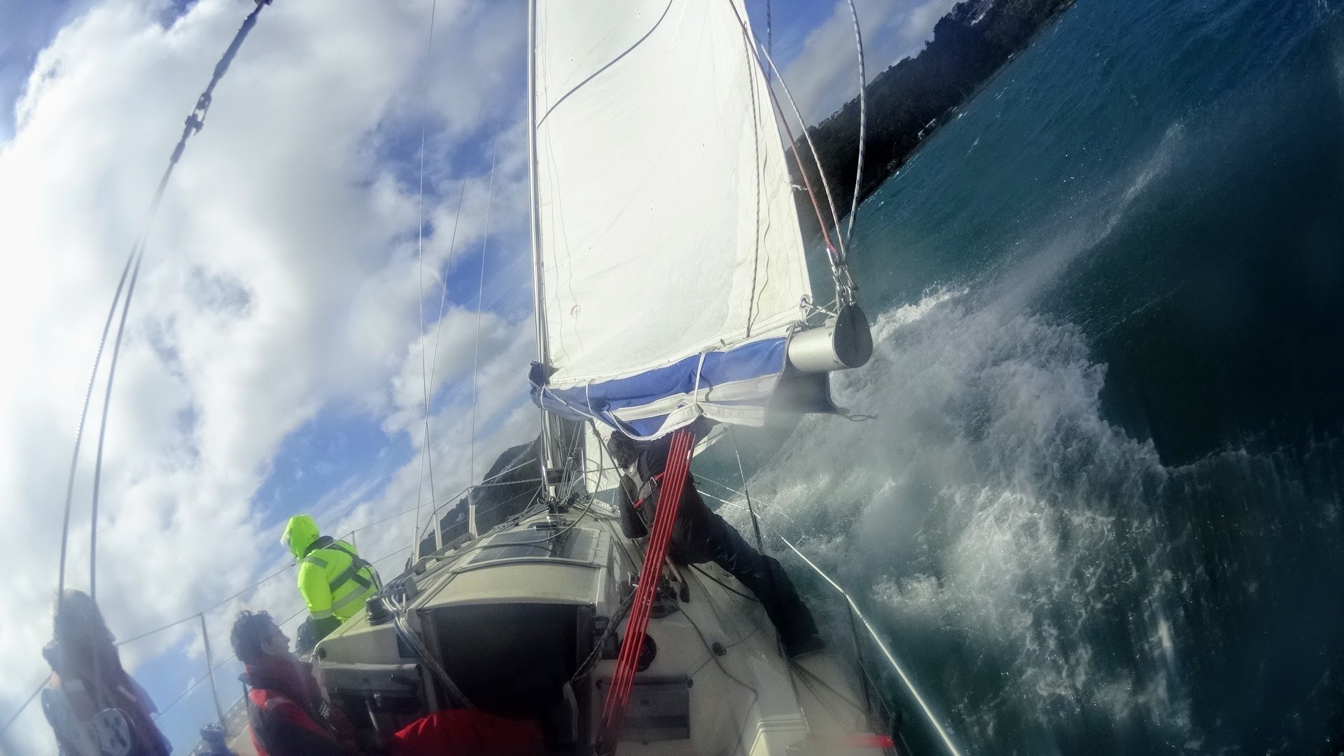 By the time we rounded Pt Halswell, we noticed Tamerlane, Saucy Sausage and Incantare had already pulled out of the race. We then had an exhilarating sail on a broad reach down to the Front Lead – surfing the waves at over 8 kts at times.