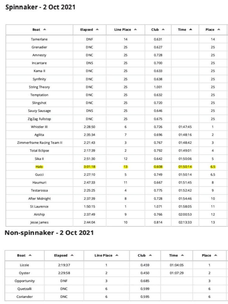The results were later published on the RPNYC web site. Halo came 6th equal on handicap with Gucci. A great achievement and pretty good result in trying conditions.