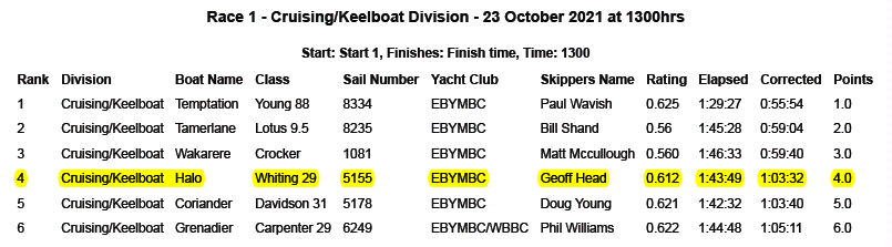 After rounding Pt Halswell we beat our way up Evans Bay in about 10 kts of wind to the finish line. Grenadier and the others were unable to catch us as we did four tacks to cross the finish at 1443 hrs, third on line behind Temptation and Coriander.