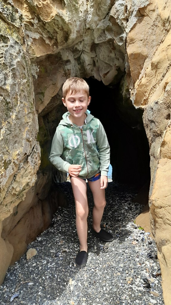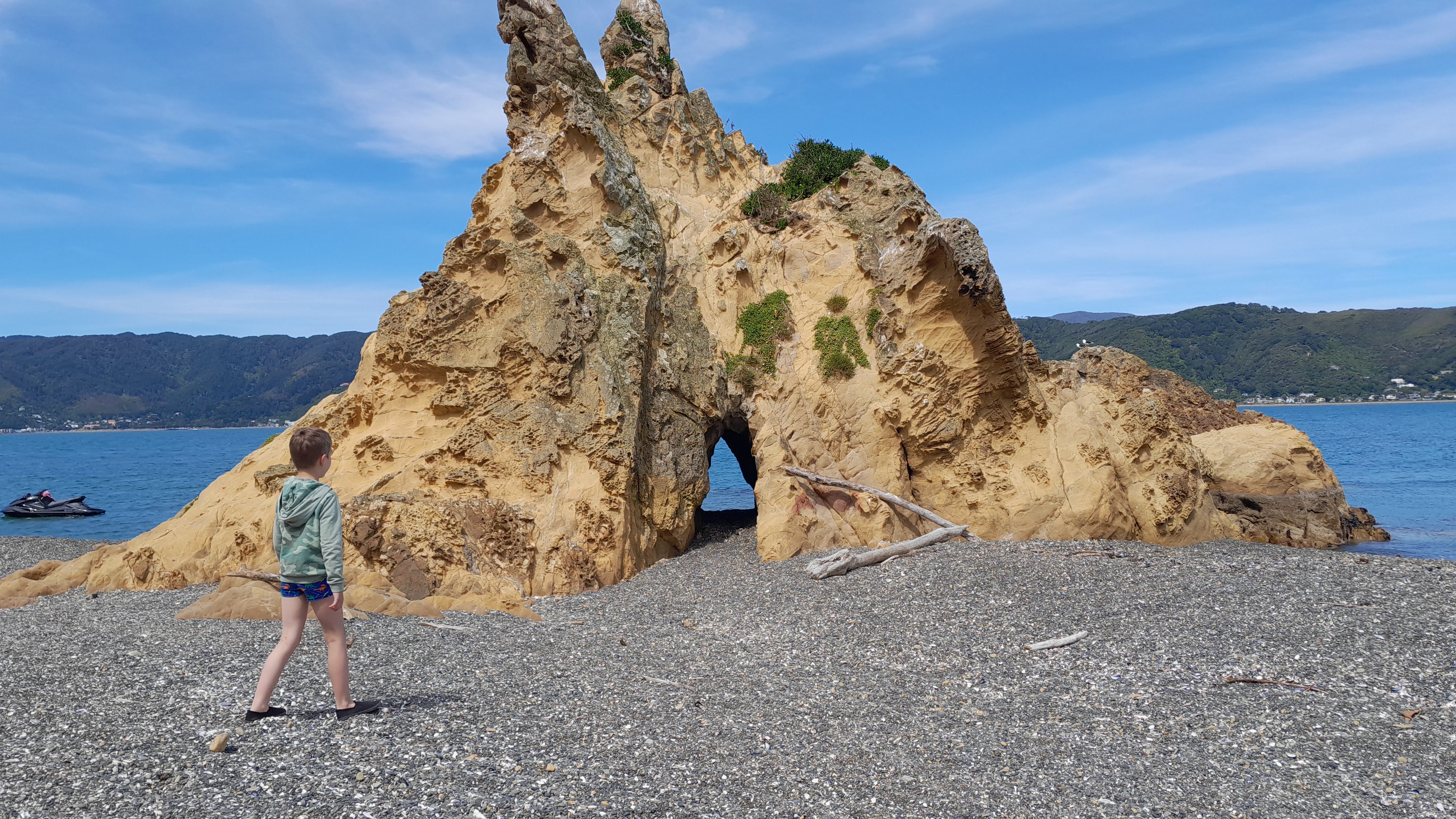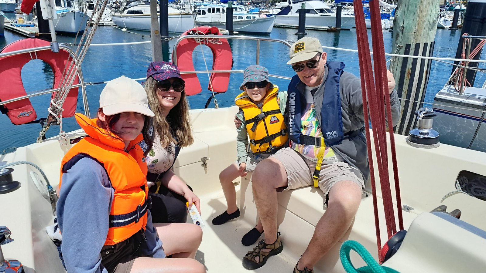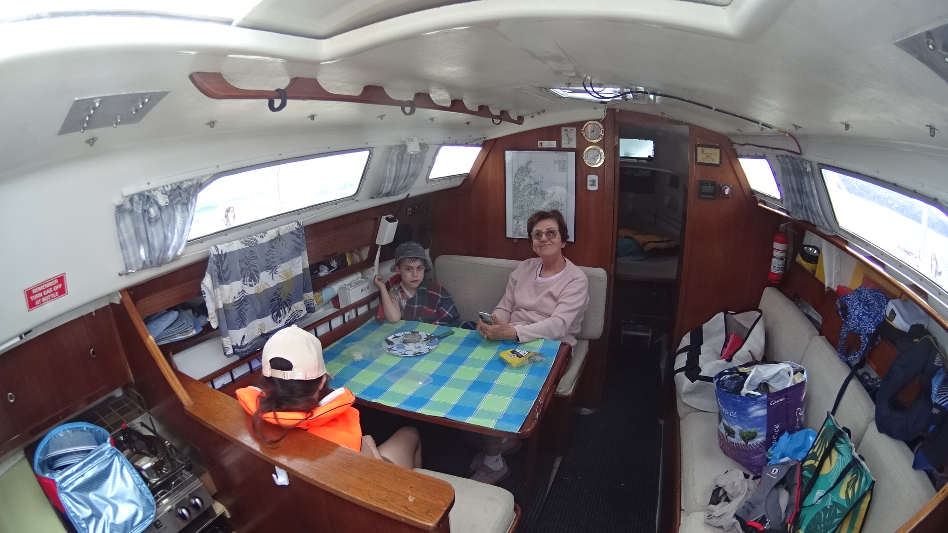 We had a great sail across the harbour with Anzac on helm and then introduced 8 year old Tennyson to helming. He did very well, taking to it like a natural! We put out the fishing line in the hope of catching a kahawai with the spinner but got no bites.