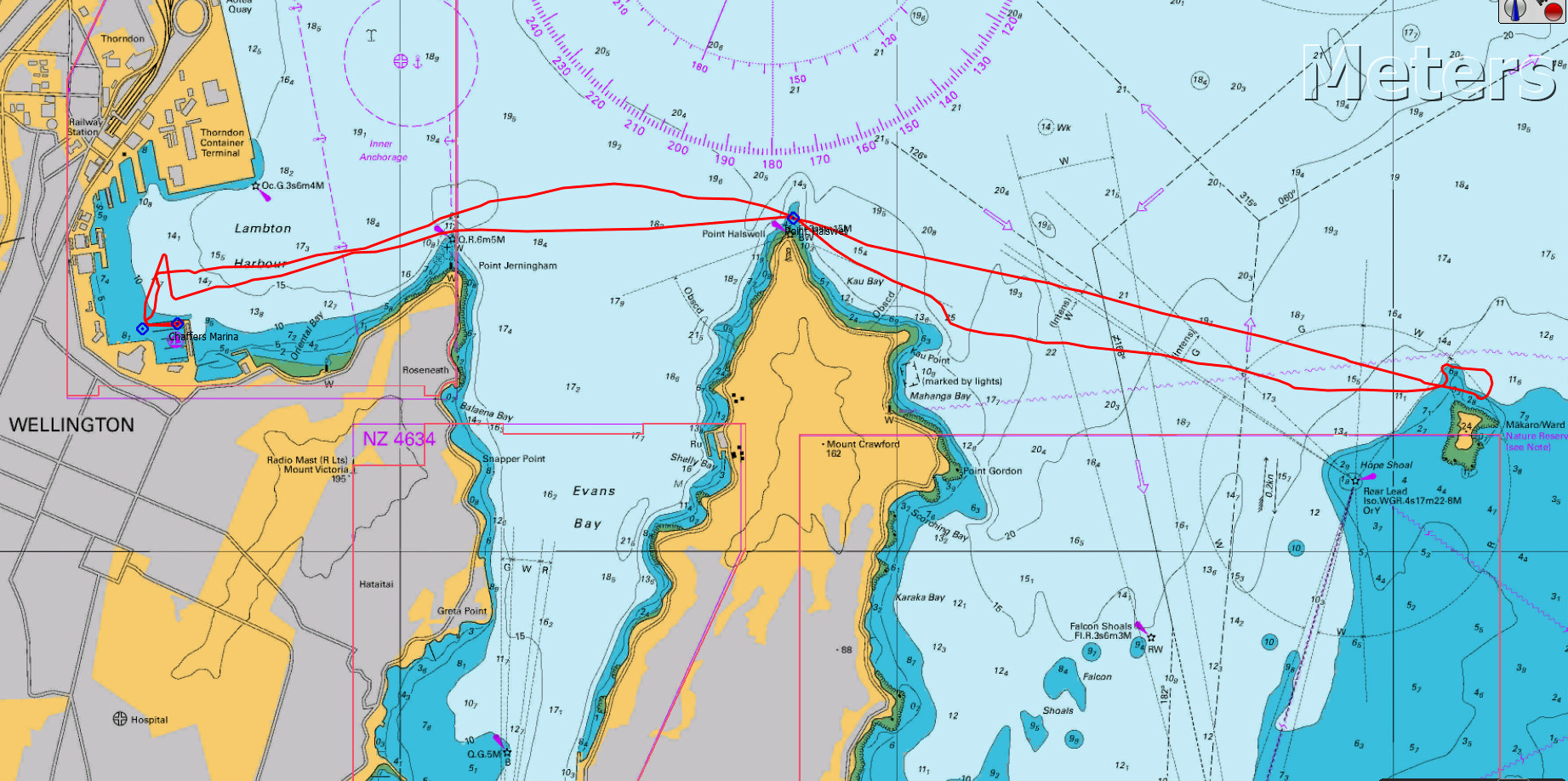 Following afternoon teas and coffees, and more attempts at fishing, we cast off from the mooring at 1655 hrs and had a good sail back to Wellington docking at our berth at Chaffers at 1753 hrs.
