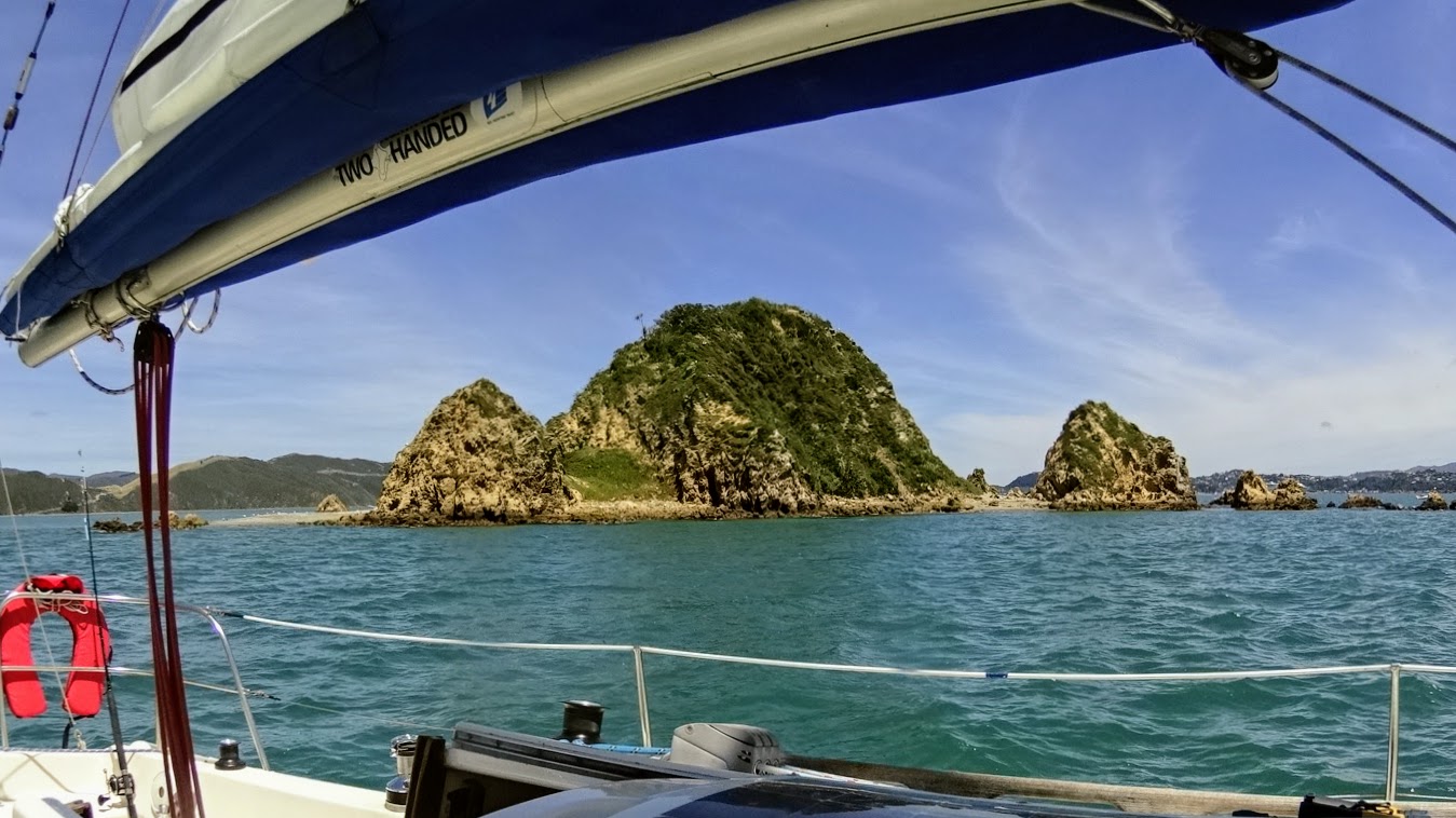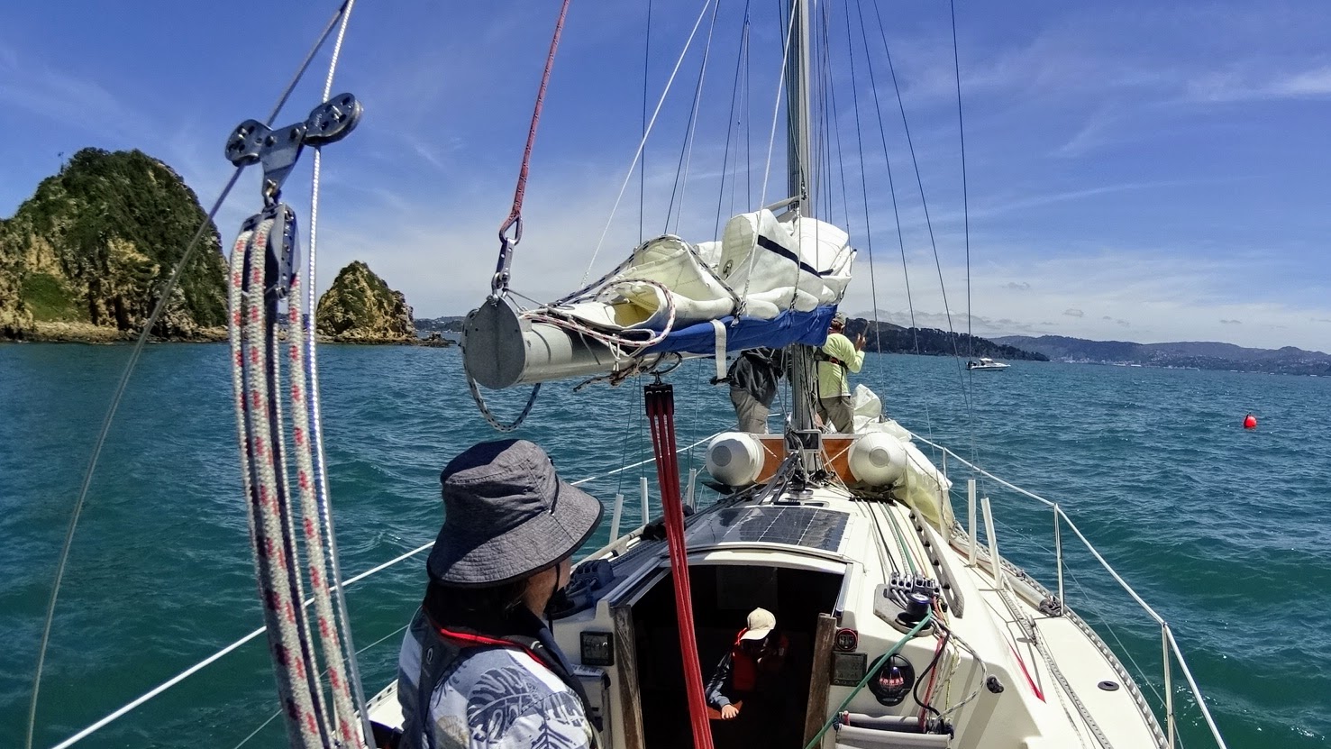 We cast off from our Chaffers berth at 1240 hrs and headed out into the harbour sailing with the mainsail and No. 3 jib. The plan was to go to explore Ward Island but the wind had turned to the north which wasn’t ideal as the club mooring is on the north side of the island. Plan B which was to visit the mooring at Scorching Bay which provides protection from the northerlies. By the time we passed Kau Bay the wind was only 10 kts and we could see the mooring was unoccupied so we decided to continue on to Ward Island.
