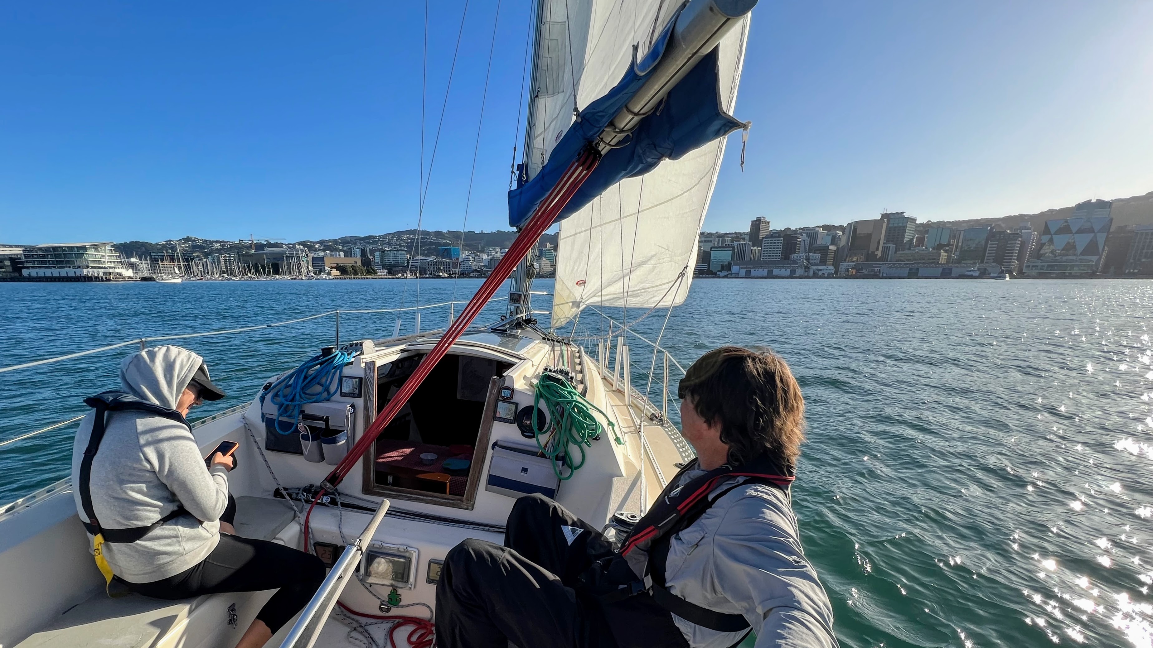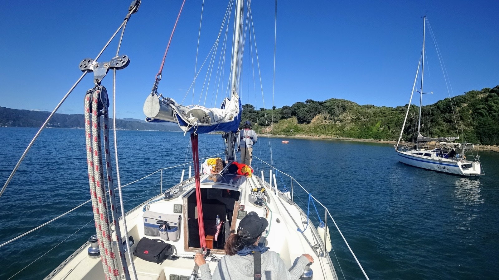 I was keen to try using the new Simrad autopilot now that it has NMEA data connected up. Jono was relieved of helm duty while our new ‘Ernesto’ did the hard work, steering effortlessly to the wind or to a waypoint on the chart plotter.