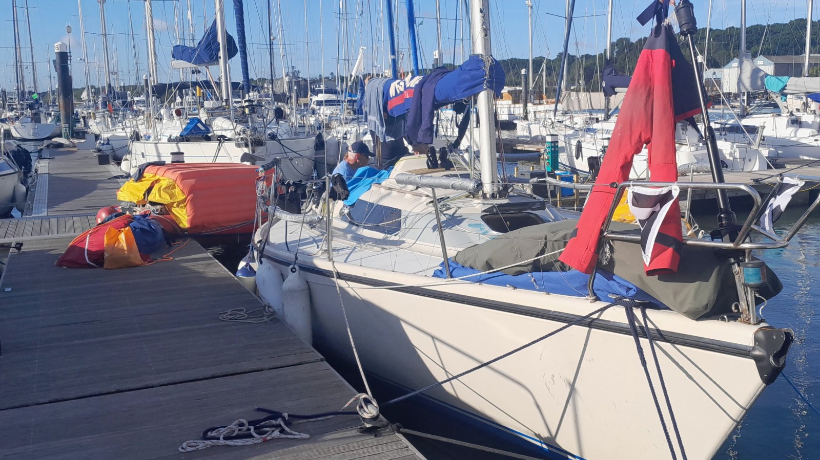 The next morning I took the Chain Ferry across to East Cowes Marina to join the crew for breakfast at the Lifeboat restaurant. Then it was down to the boat to get ready for the day’s sailing.