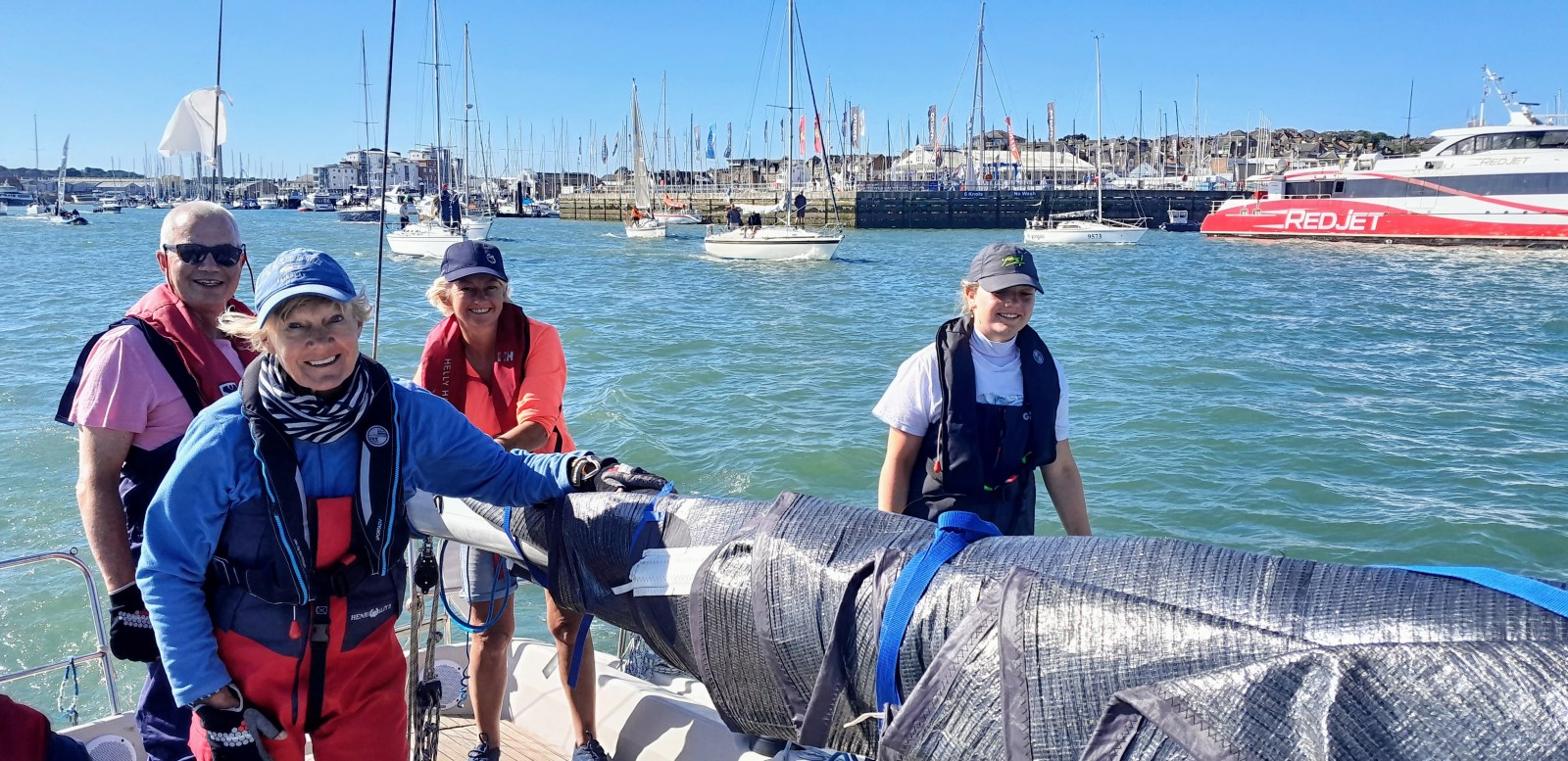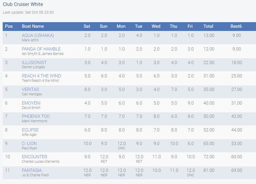 Crew: Mark Attrill (skipper), Margaret, Molly, Michelle Nicholson, Gerard Nicholson, Ella Nieper, Stuart Wheeler, Geoff Head.