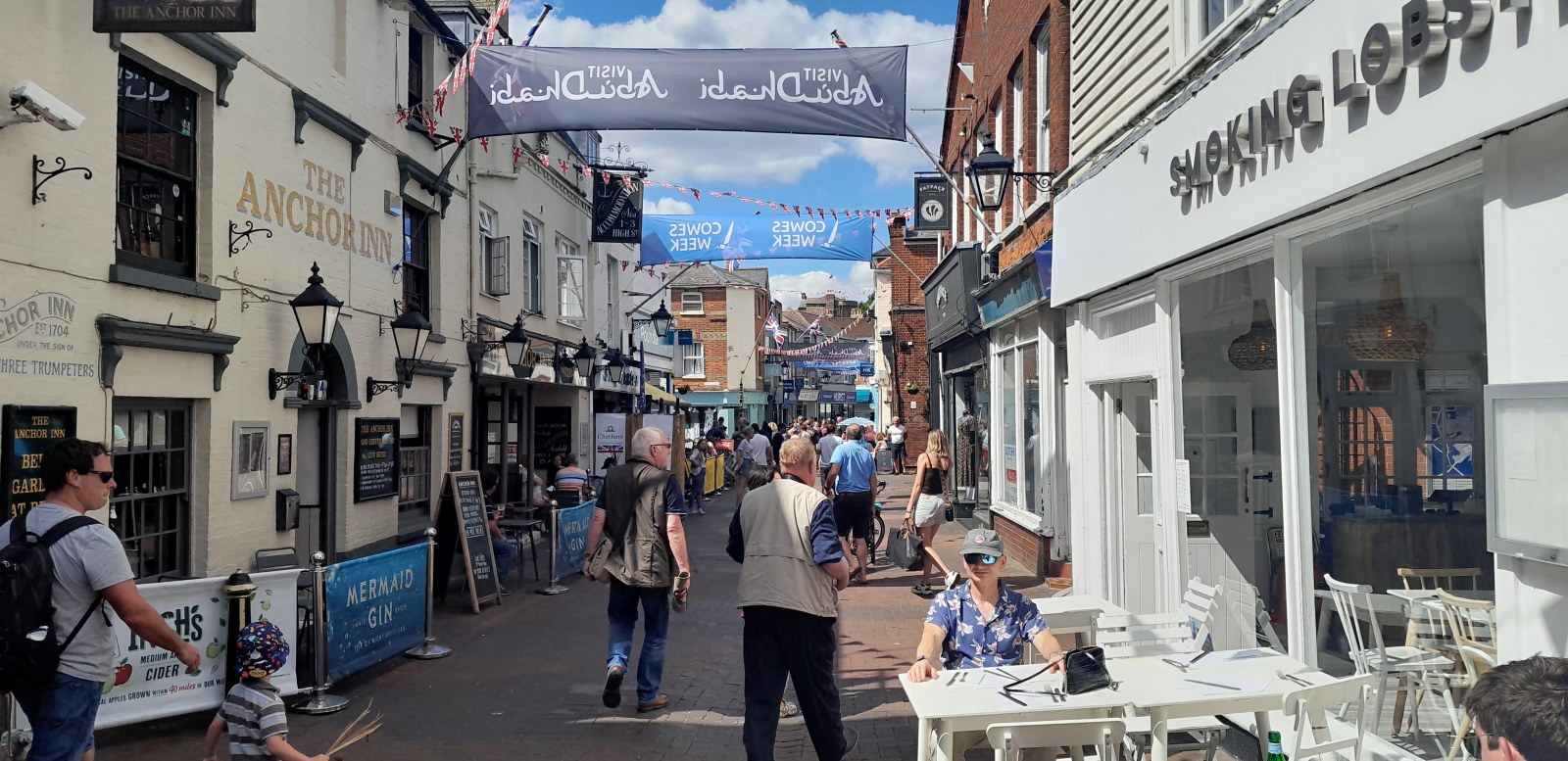 I found the boat on the Cowes Week website crew seeker forum. After a couple of emails with Mark I accepted his offer to join the crew for part of the week. I took the train from London to Southampton and then the Red Jet passenger ferry to Cowes on the Isle of Wight. Checked into my little hotel, the Fountain Inn, and eventually caught up with the Ushaka crew who were partying with the crowds on the waterfront. They were a friendly lot and made me very welcome.