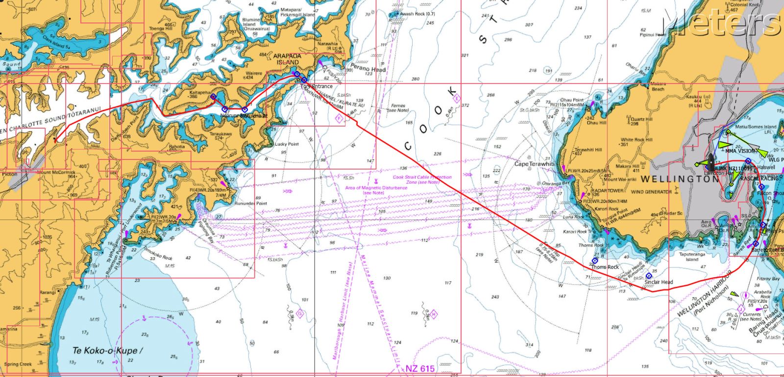 Following our participation at the Waikawa Women’s Regatta, the plan was for Halo, Grenadier, Tamerlane and 88% Proof to sail together across Cook Strait from Waikawa back to Wellington early on Wednesday morning. The forecasts were showing a dying northerly from midnight Tuesday but changing to a strong southerly Wednesday afternoon. It was going to be a pretty narrow weather window of opportunity.