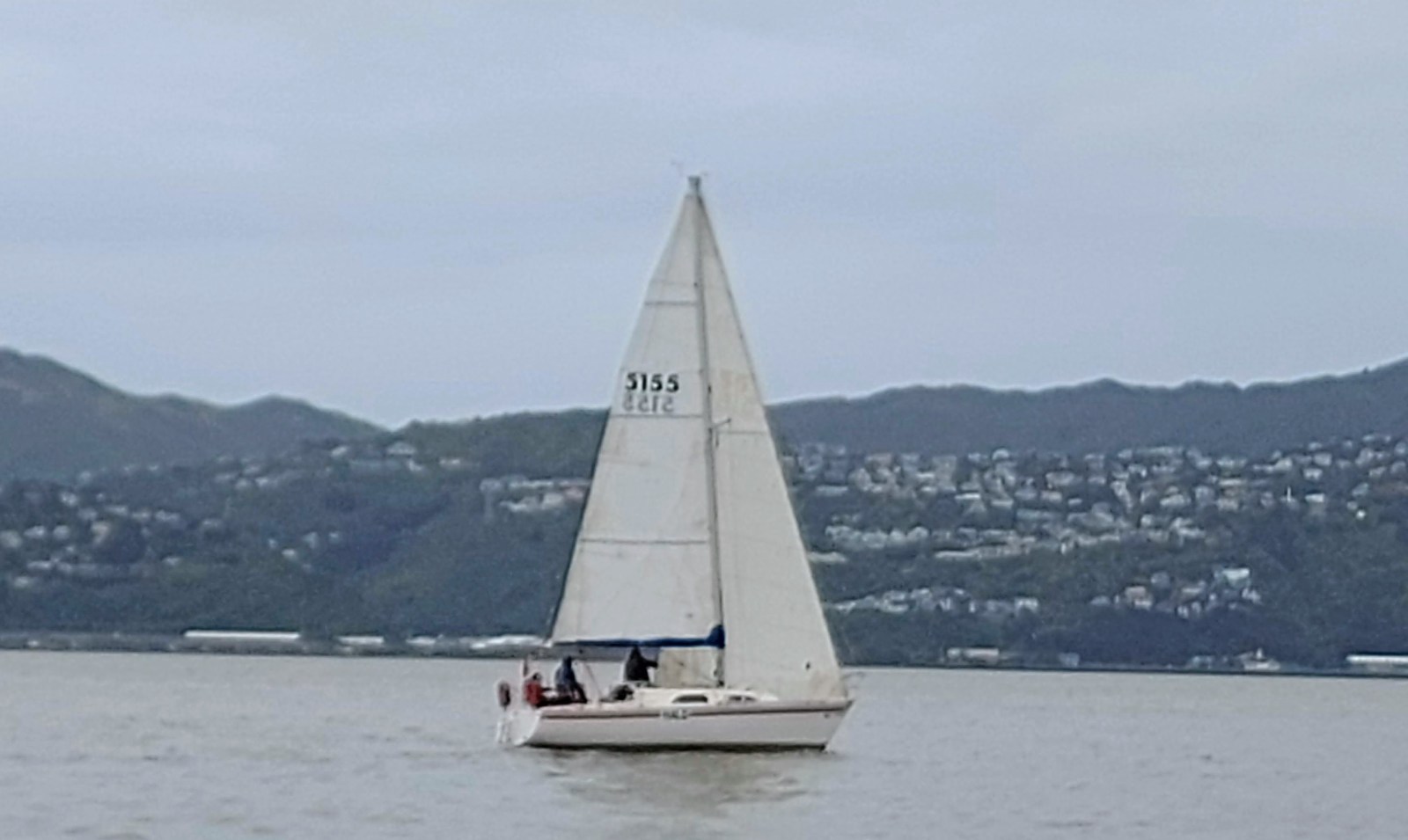 Halo had a good start at 1300 hrs amongst a large fleet of boats including many from Port Nick and Lowry Bay. With the very light winds dying out to almost nothing it took us 1 hr 40 mins before we got to the top of Evans Bay. The race officer announced the shortened course, removing the Ward Island mark. By the time we rounded Point Halswell at 1500 hrs we were actually ahead of most of the fleet who were stuck in the lee of the peninsula. At 1520 the race officer Neil, announced that racing was abandoned for the day.