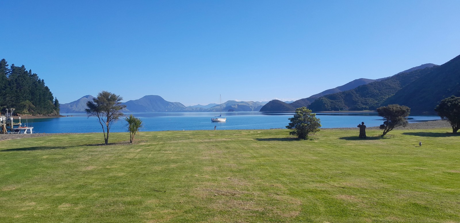 We eventually arrived at D’Urville Island and tied Halo up on one of the moorings in front of the Catherine Cove lodge at 1335 hrs. With the boat no longer moving it suddenly got very hot – 28 degrees inside the cabin. Time for a celebratory cold beer.