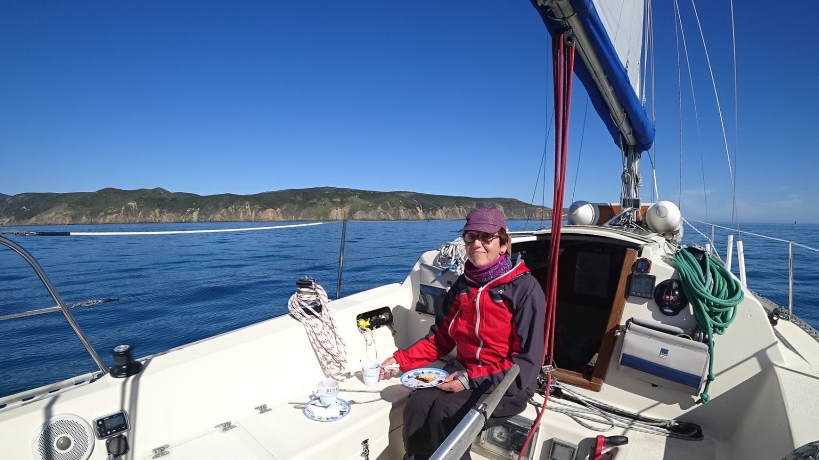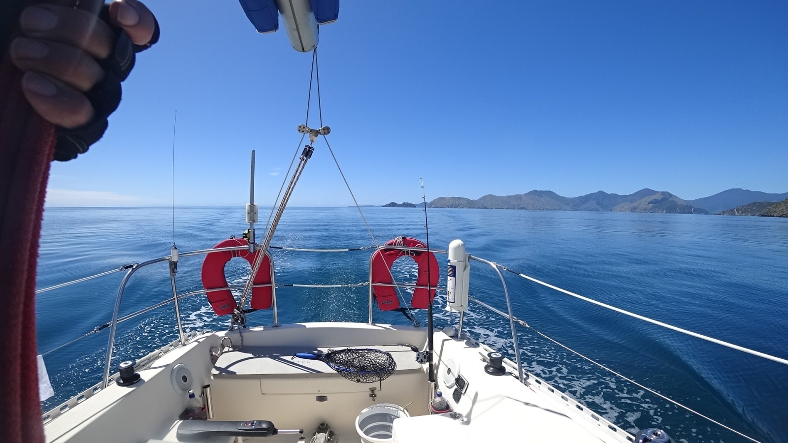We then sailed across the northern entrance of Queen Charlotte Sound to arrive at Cape Jackson which we transited at 0930 hrs. We put the fishing line out ever hopeful of catching a nice kahawai for supper.