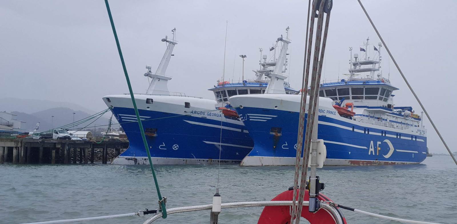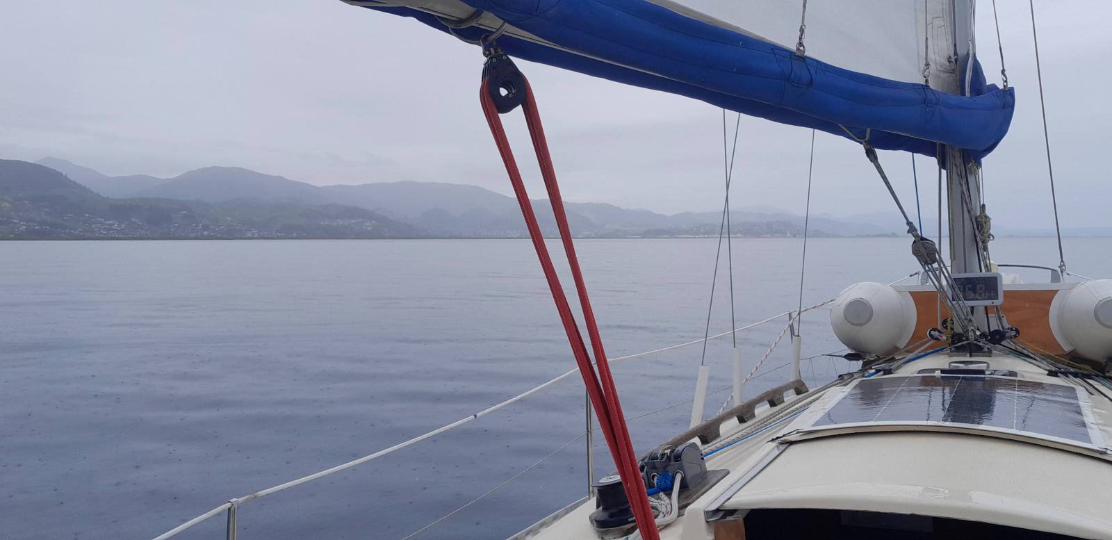 As we passed Pepin Island at 1248 hrs the wind suddenly stopped and the rain started. We motored the rest of the way down to Nelson and entered ‘The Cut’, motored past the big ships, arrived at the marina and tied up at the visitors jetty at 1514 hrs.