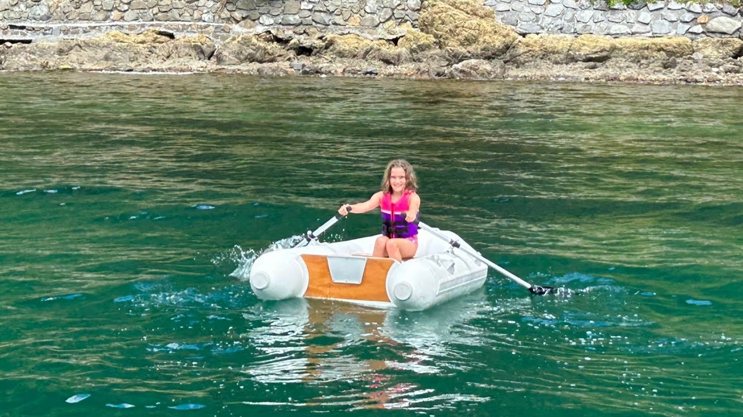 Isabelle was keen to learn how to row the dinghy and after a short instruction from Grandpa she quickly picked up the technique. A natural!