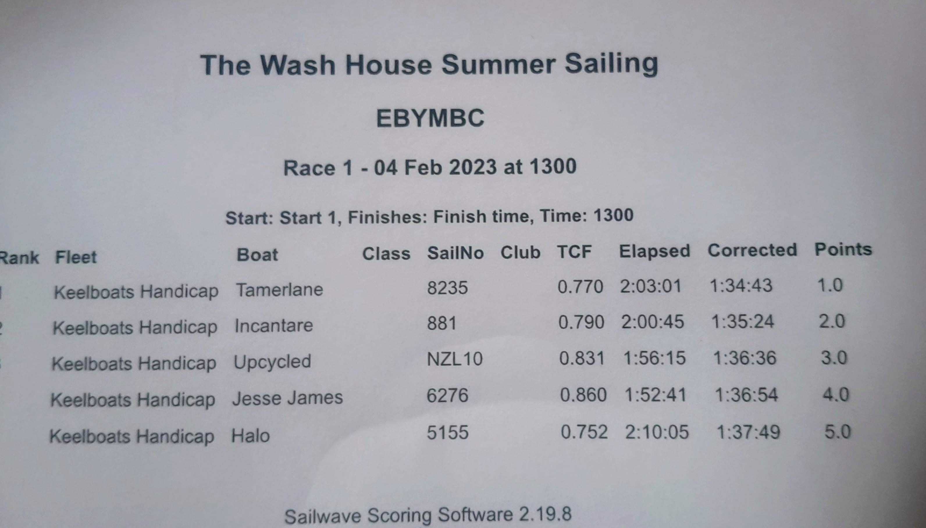Once we got around the mark we hoisted the Genoa and with both head-sails flying we sailed at up to 7.5 kts down the harbour and into Evans bay. We crossed the line at 1510 hrs.