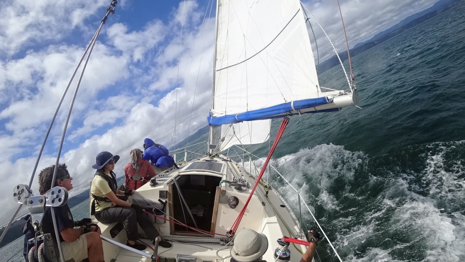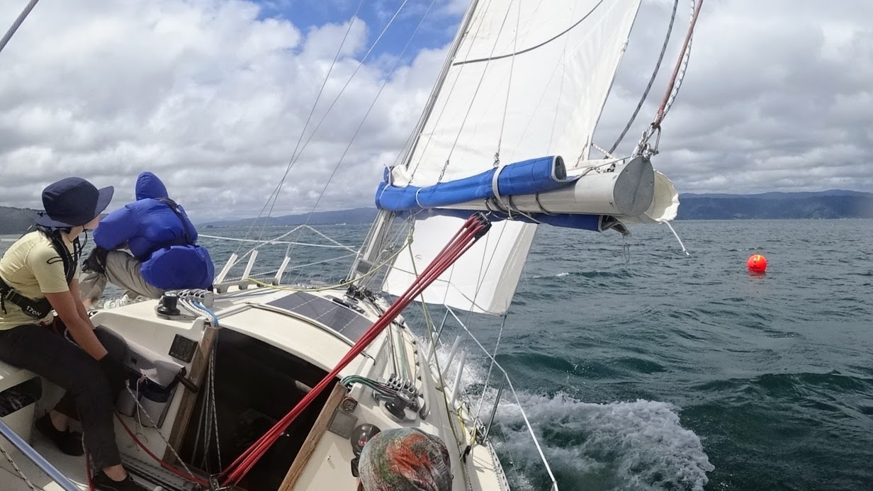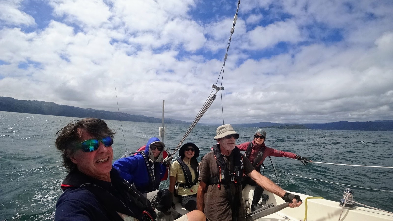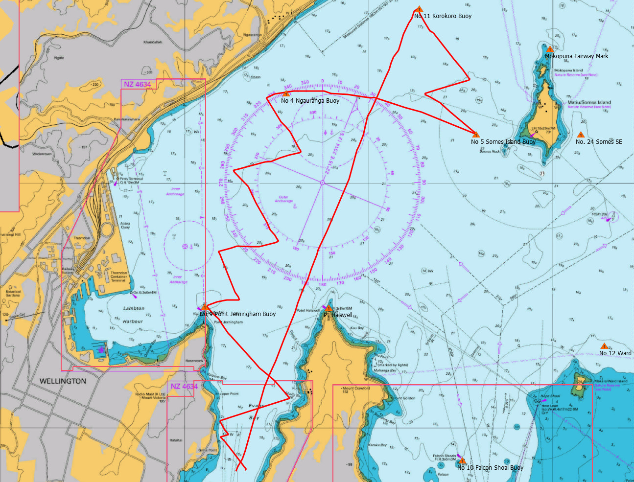 We rounded the Ngauranga mark at 1356 hrs and then with the northeasterly wind we eased the sails for a fast close-reach towards Somes Island getting up to 7 kts at times. We rounded mark #11 and it was then back to sailing close-hauled up to the windward mark.