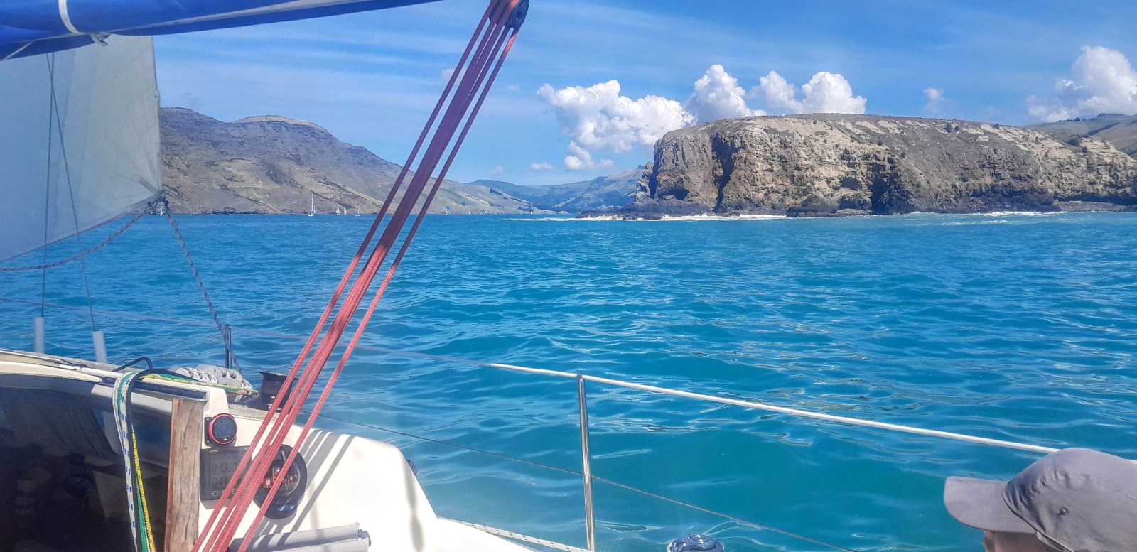 The race started at 1100 hrs but we just happily cruised along behind the fleet of about 20 boats, slowly tacking out way out of the harbour into about 10 kts NE headwinds. Once we passed Godley Head and into the open seas we took a right turn and headed south around Banks Peninsular. A beautiful calm and sunny day. Perfect for the first-timers.