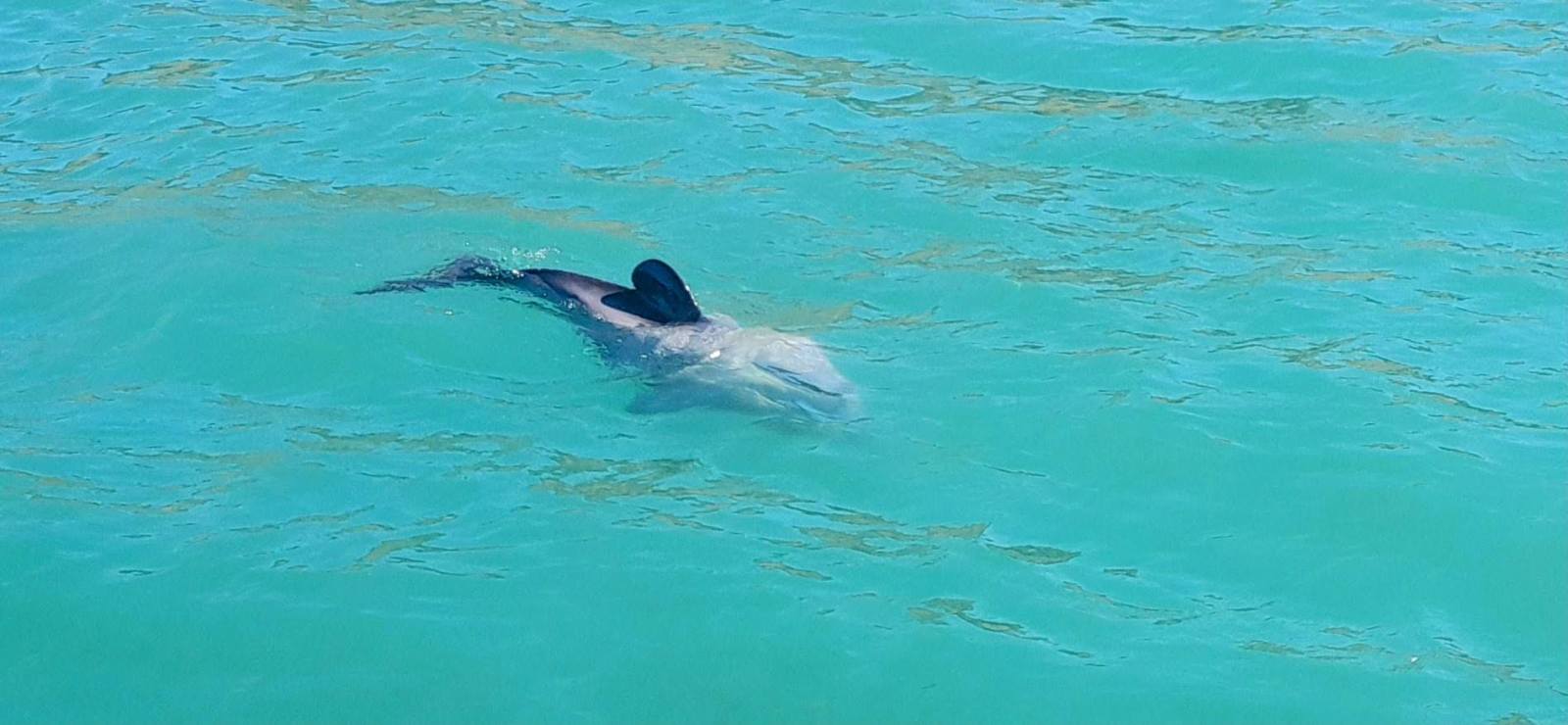 We weighed anchor at 1120 hrs and started the trip back home. As we were motor sailing up Pigeon Bay we were visited by a couple of small Hector dolphins with their Mickey Mouse ear dorsal fins. First time I’ve ever seen these dolphins as they only inhabit the South Island.