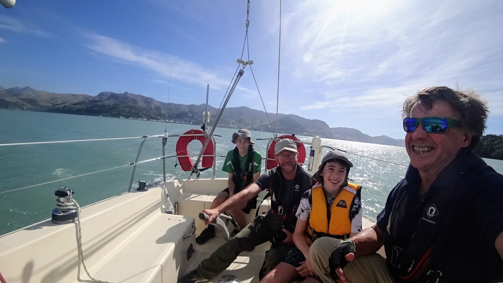 Sailing back into Lyttleton Harbour we were visited a by a pod of 20 or more common dolphins who escorted us down the bay. Great excitement!