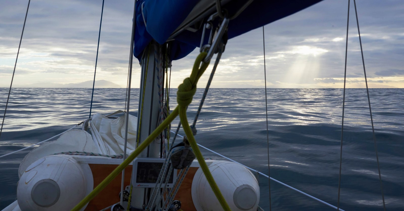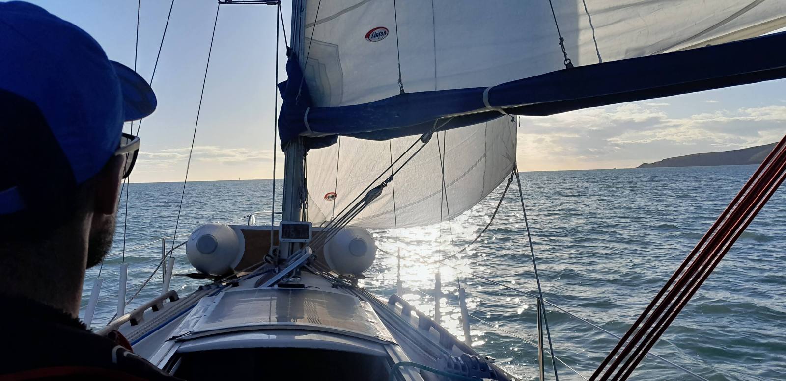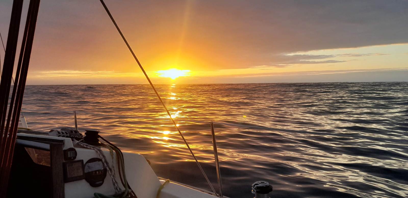 We soon had a nice breeze from the south to fill our sails and we rigged up the spinnaker pole to sail ‘goose-winged’ with an average boat speed of 6.5 knots. Champagne sailing!