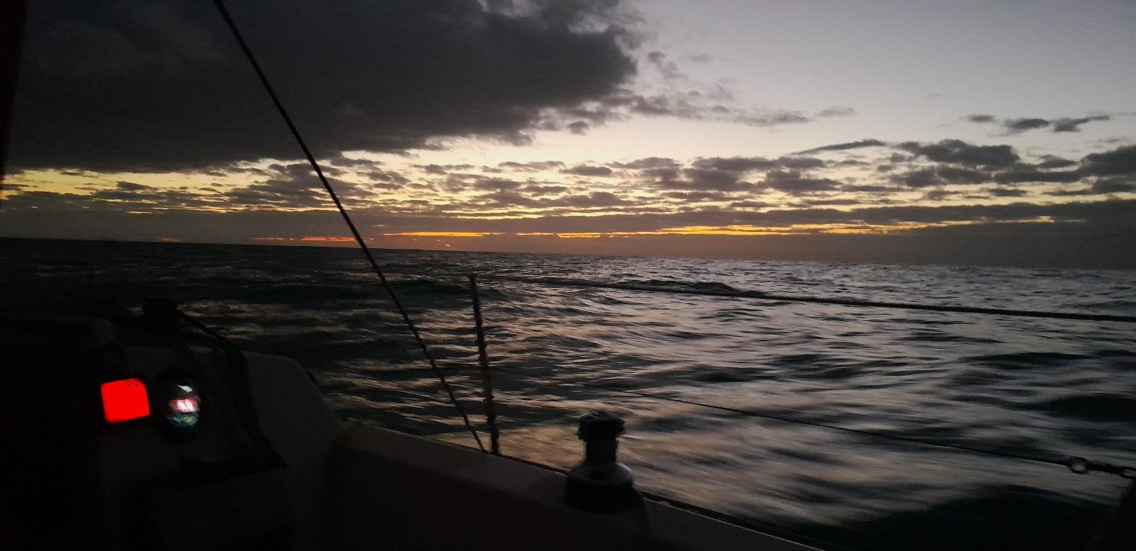 We each were able to get some sleep with our 4-on 2-off watch system. As the sky in the east slowly started to get lighter we enjoyed watching the beautiful sunrise.